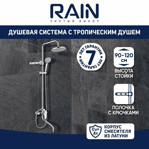 Душевая система со смесителем RAIN (кер. картридж 35мм, латунь), верхний душ 1 режим, ручной 3 реж: сравнение цен, характеристики, фото, актуальное наличие и цены.