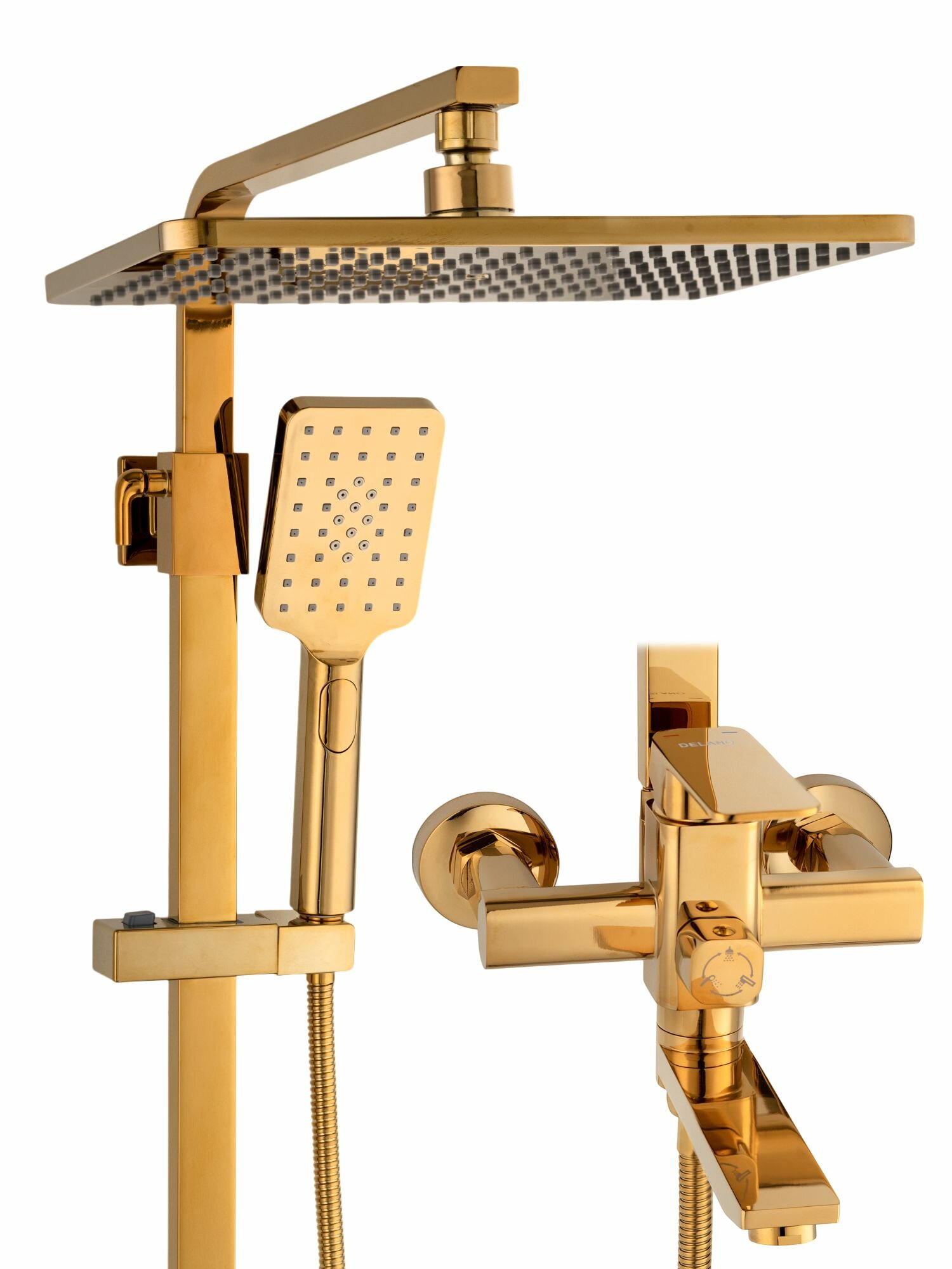 Купить Душевая система со смесителем, 3-х функциональная , с тропическим душем, максимальная высота 150 см, шлангом и лейкой, цвет глянцевое античное золото с доставкой по всей России. Душевая система со смесителем, 3-х функциональная , с тропическим душем, максимальная высота 150 см, шлангом и лейкой, цвет глянцевое античное золото: сравнение цен, характеристики, фото, актуальное наличие и цены.