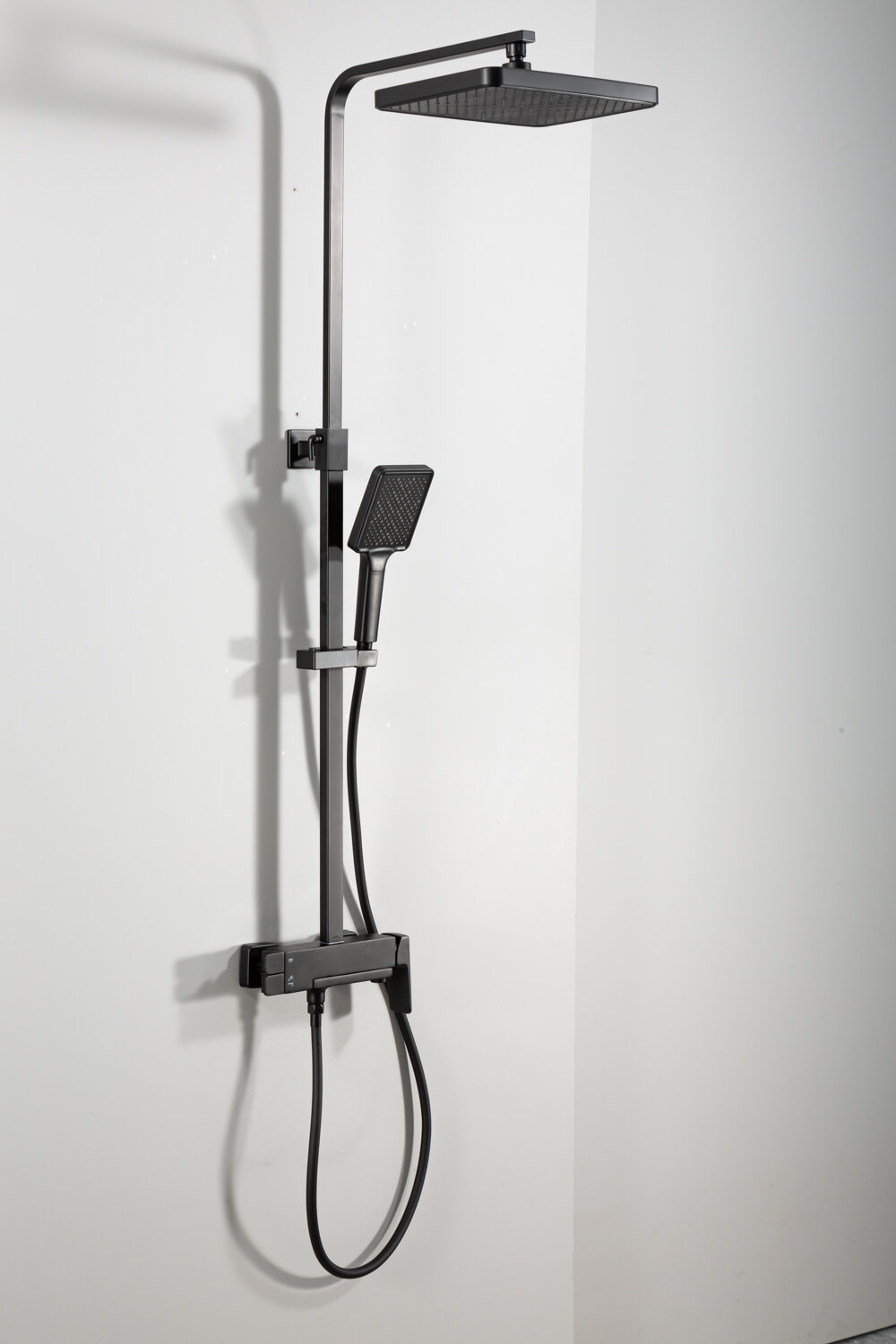 Купить Душевая стойка со смесителем и тропическим душем Frap H90 F2490-6, черный, латунь с доставкой по всей России.