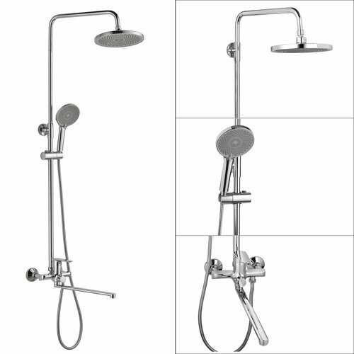 Душевая система со смесителем хром 3х функциональная OUTE - это современное и функциональное решение для вашей ванной комнаты. Смеситель шаровый, корпус с длинным поворотным изливом по центру, душевым шлангом и лейкой, дивертор переключения 3 режима. Длина штанги регулируется от 900 до 1300 мм. Диаметр тропического душа - 20 см. Лейка тропическая с поворотным механизмом. Душевой гарнитур со смесителем обеспечивает стабильность подачи воды, благодаря высококачественному дивертору. Это особенно важно для тех, кто ценит комфорт и безопасность при принятии душа. Три режима работы позволяют выбрать наиболее подходящий для вас вариант. Вы можете наслаждаться мягким и расслабляющим режимом, интенсивным и бодрящим или же использовать их комбинацию для максимального удовольствия от душа. Душевая система оснащена душевыми гарнитурами, которые обеспечивают удобство и комфорт при использовании. Вы сможете легко переключать режимы на лейку для душа, излив или тропический душ. Бренд OUTE зарекомендовал себя на рынке как производитель качественной и надежной продукции. Выбирая душевую систему 3х функциональную OUTE, вы делаете ставку на проверенное качество и долговечность. В целом, смеситель с тропическим душем - это отличный выбор для тех, кто ценит комфорт, функциональность и качество. Комплект: смеситель, чашки, эксцентрики, прокладки, стойка, шланг, две лейки, крепления. Смеситель шаровый, корпус с поворотным гусаком, дивертор переключения 3 режима 360 градусов. Длина штанги регулируется от 900 до 1400 мм. Диаметр тропического душа — 225 мм, лейка тропическая с поворотным механизмом. Душевая лейка диаметр 125 мм трехрежимная. Смеситель ширина 175 мм, высота 150 мм, вылет от стены с чашками и установленными эксцентриками 430 мм, поворотный гусак длина 335 мм, расстояние от смесителя до крепления 700 мм, длина шланга 1500 мм. Диаметр нижней штанги 24 мм, диаметр верхней штанги 21 мм, вылет штанги 410 мм.
