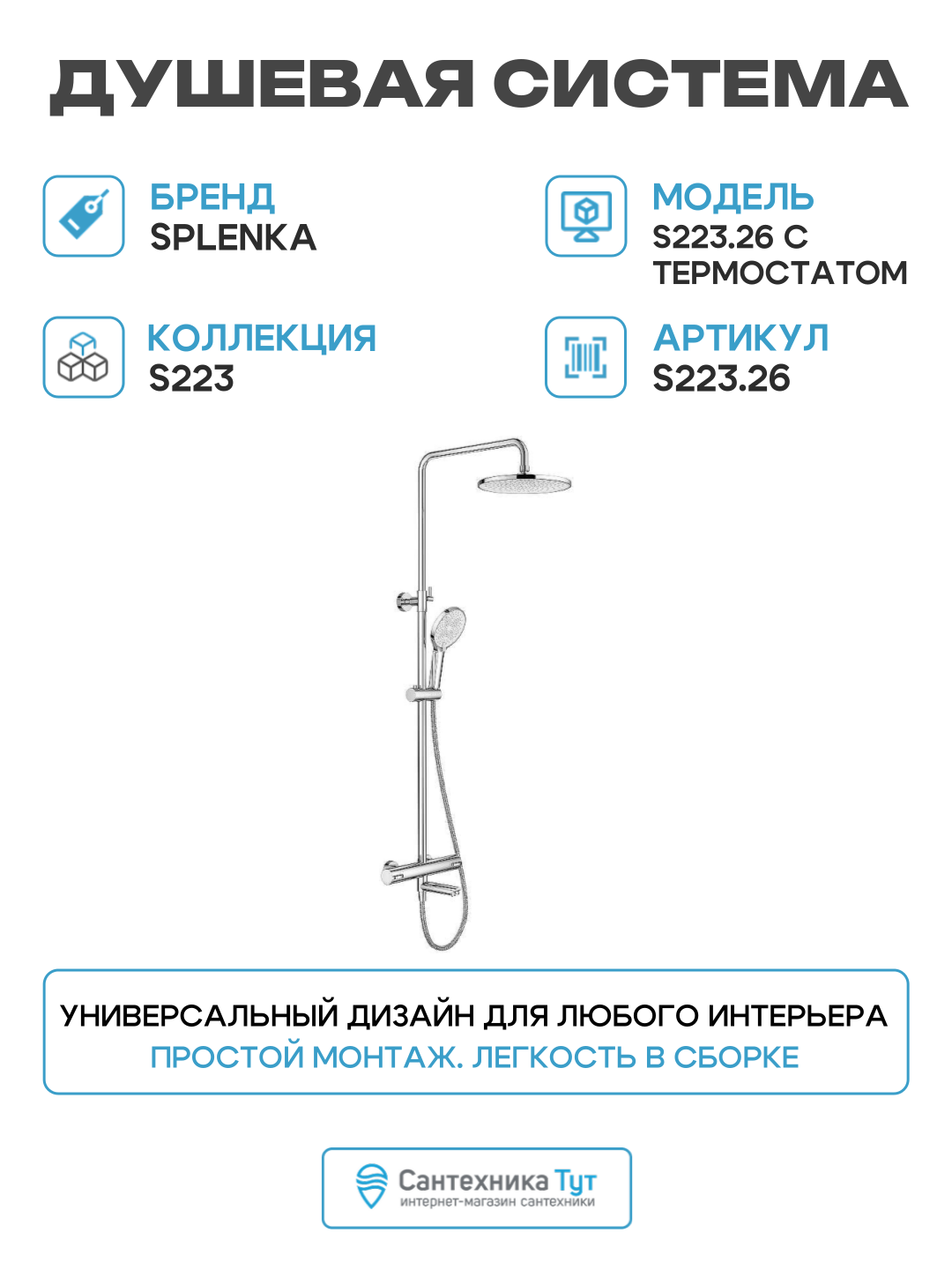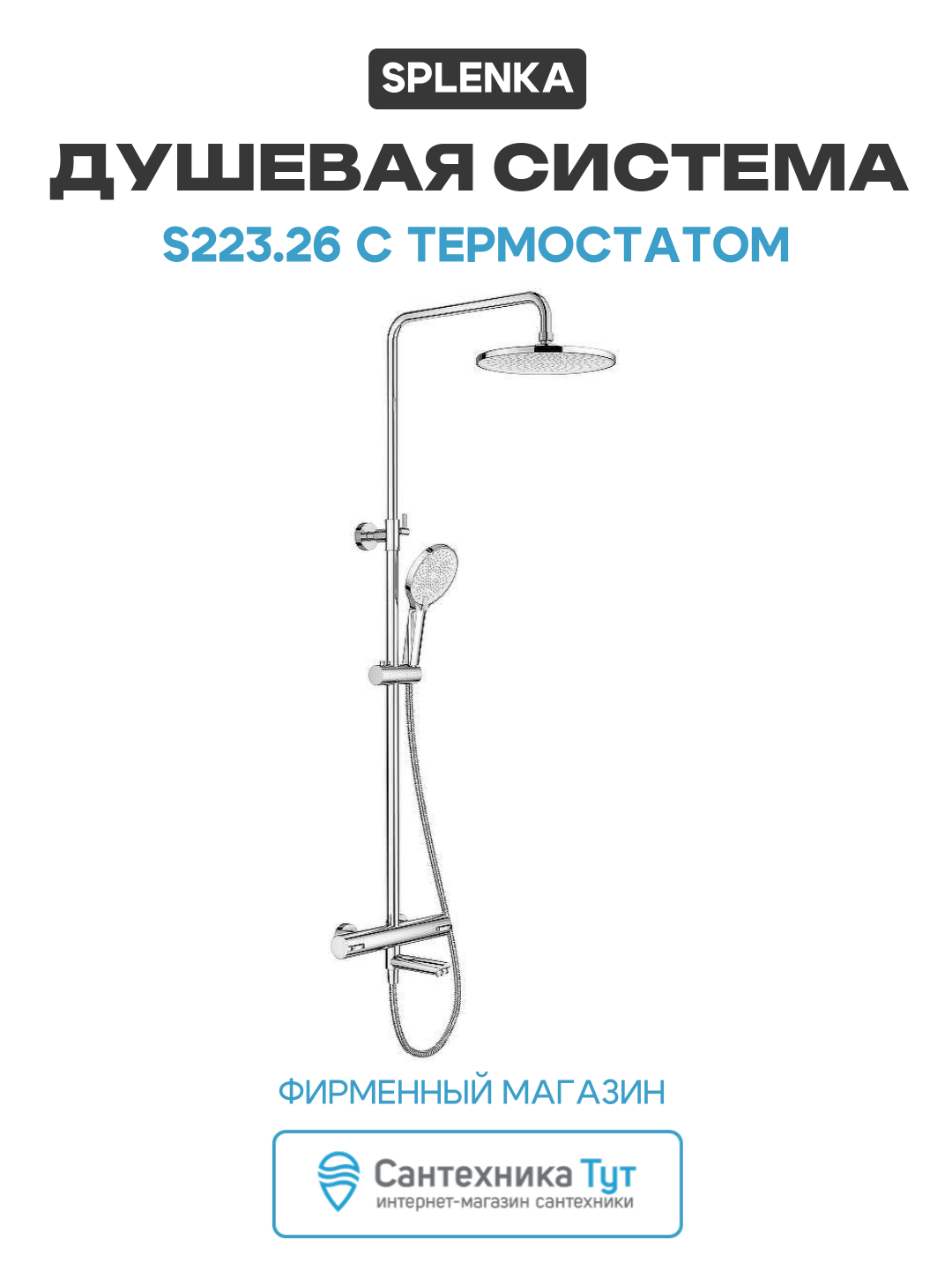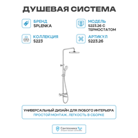 Купить Душевая система Splenka S223.26 с термостатом Хром нержавеющая сталь на стену с изливом со смесителем с доставкой по всей России. Душевая система Splenka S223.26 с термостатом Хром нержавеющая сталь на стену с изливом со смесителем: сравнение цен, характеристики, фото, актуальное наличие и цены.