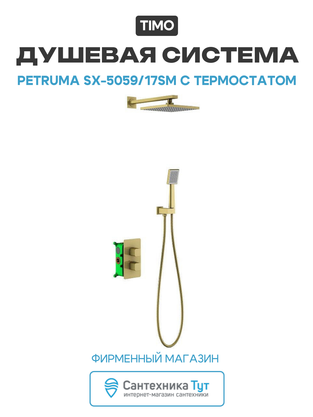 Купить Душевая система Timo Petruma SX-5059/17SM с термостатом Золото матовое латунь встраиваемый без излива со смесителем с доставкой по всей России. Душевая система Timo Petruma SX-5059/17SM с термостатом Золото матовое латунь встраиваемый без излива со смесителем: сравнение цен, характеристики, фото, актуальное наличие и цены.