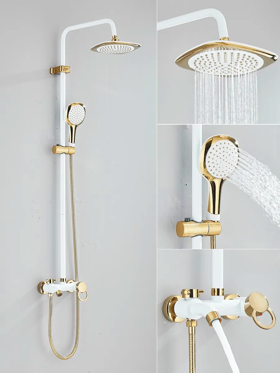 Душевая система в винтажном стиле из латуни может быть украшением любой ванной комнаты. Латунные душевые системы обладают стойкостью к коррозии и имеют прочную конструкцию. Тропический душ оснащен большой душевой лейкой и ручной душевой лейкой. Керамический картридж – смеситель оснащен керамическим картриджем, который обеспечивает плавное и бесшумное перемещение рукоятки смесителя. Керамический картридж также обеспечивает долговечность и надежность работы смесителя, предотвращая протечки и подтеки воды. Такие душевые системы могут быть установлены как в классических, так и современных ванных комнатах, придавая им особое очарование и утонченность.