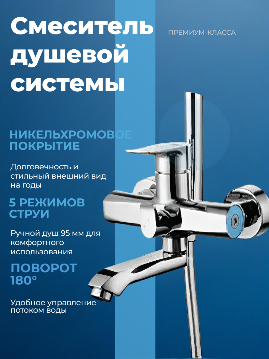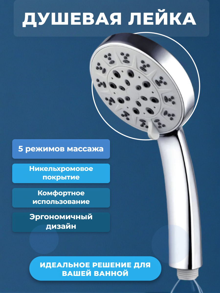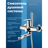 | Дополнительная информация | Совместим с большинством смесителей. Система тихой воды. Многослойное покрытие никель-хромом. |