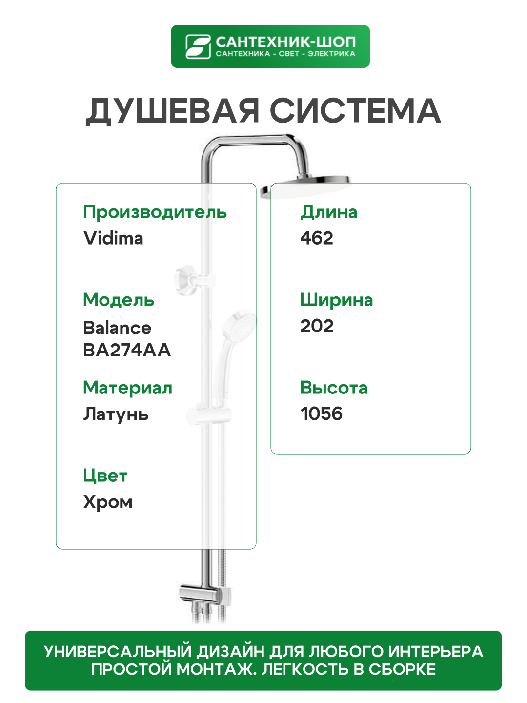 Душевая система Vidima Balance BA274AA Хром латунь на стену: сравнение цен, характеристики, фото, актуальное наличие и цены.