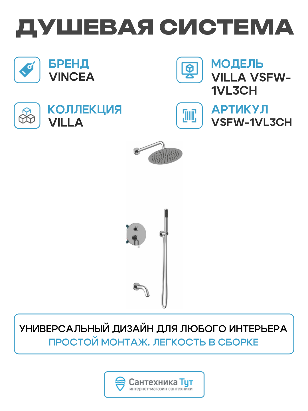 Душевая система Vincea Villa VSFW-1VL3CH цвет Хром: сравнение цен, характеристики, фото, актуальное наличие и цены.