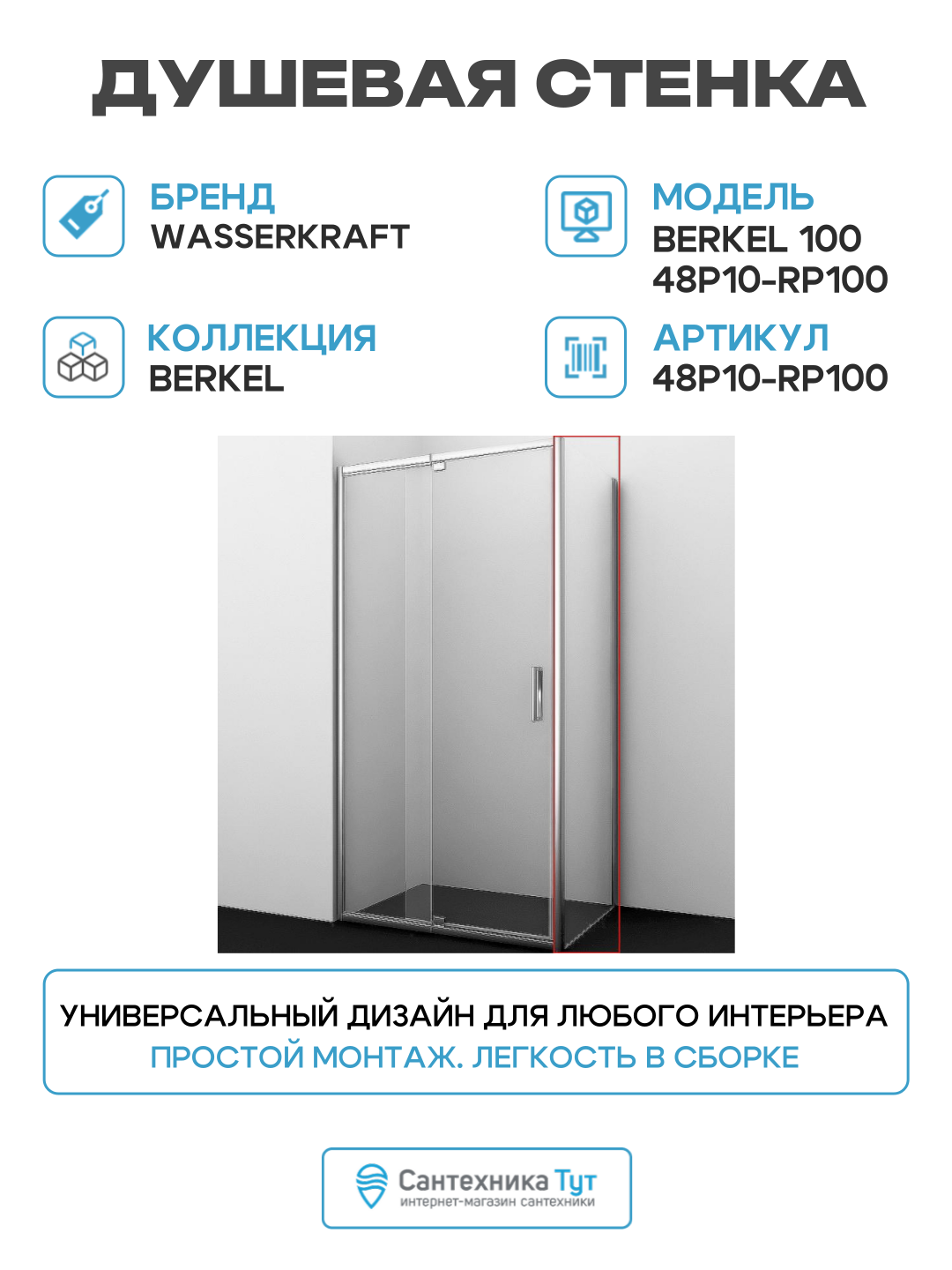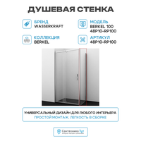 Душевая стенка WasserKRAFT Berkel 100 48P10-RP100 профиль Хром стекло прозрачное алюминий хром Германия: сравнение цен, характеристики, фото, актуальное наличие и цены.