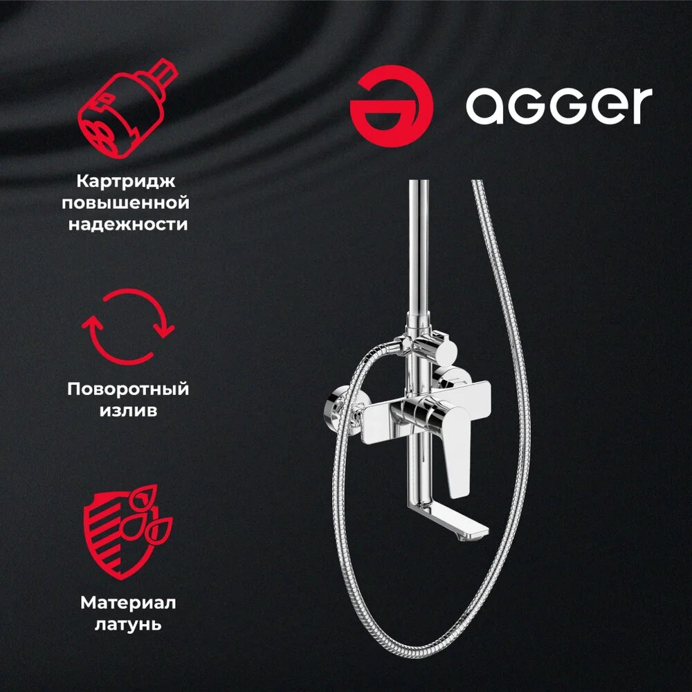 Купить Душевая стойка Agger Brilliant A0393300 с тропическим душем, со смесителем, с изливом, латунная, хром, рычаг сбоку с лейкой с доставкой по всей России. Душевая стойка Agger Brilliant A0393300 с тропическим душем, со смесителем, с изливом, латунная, хром, рычаг сбоку с лейкой: сравнение цен, характеристики, фото, актуальное наличие и цены.