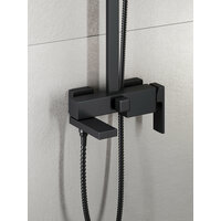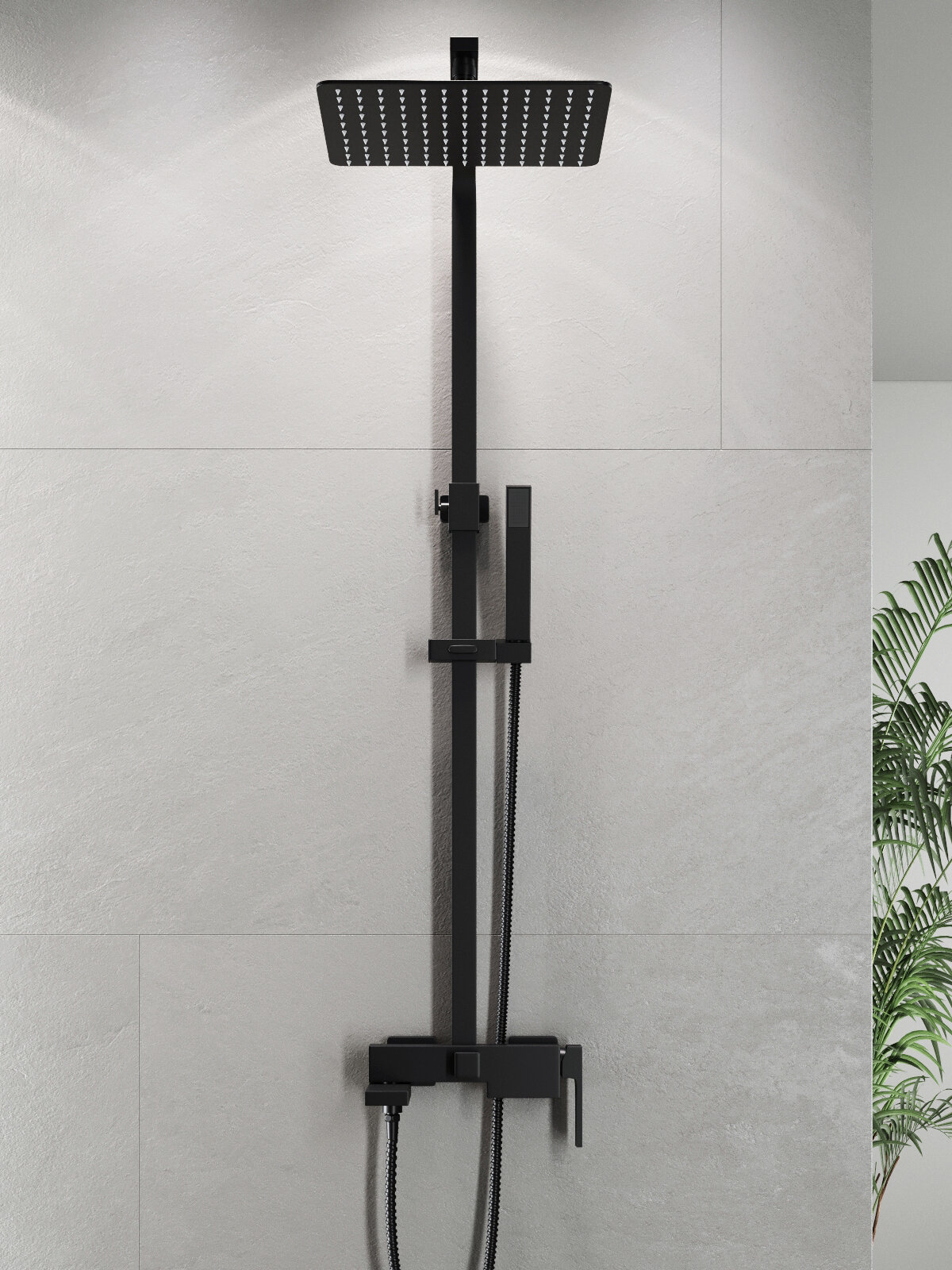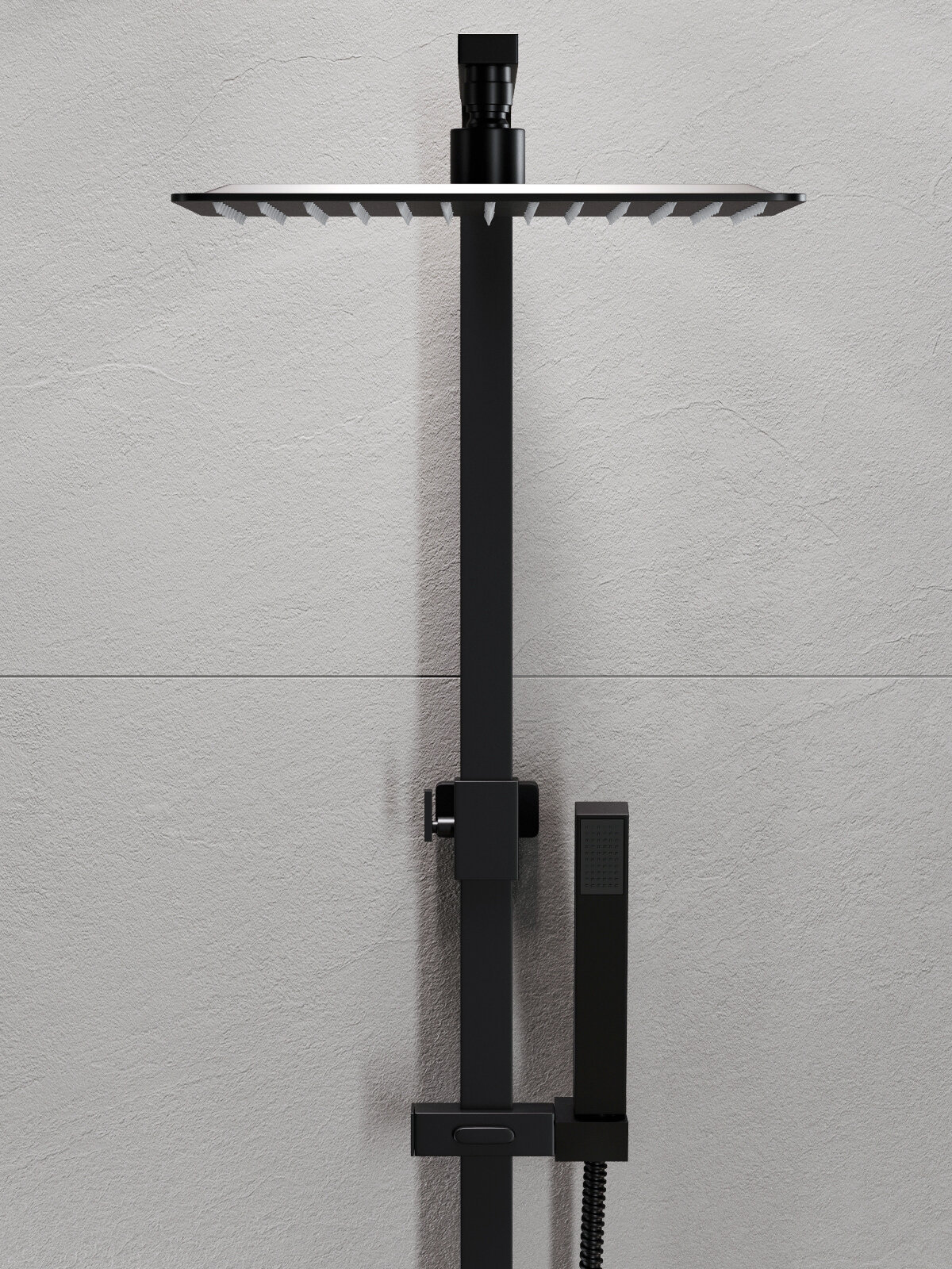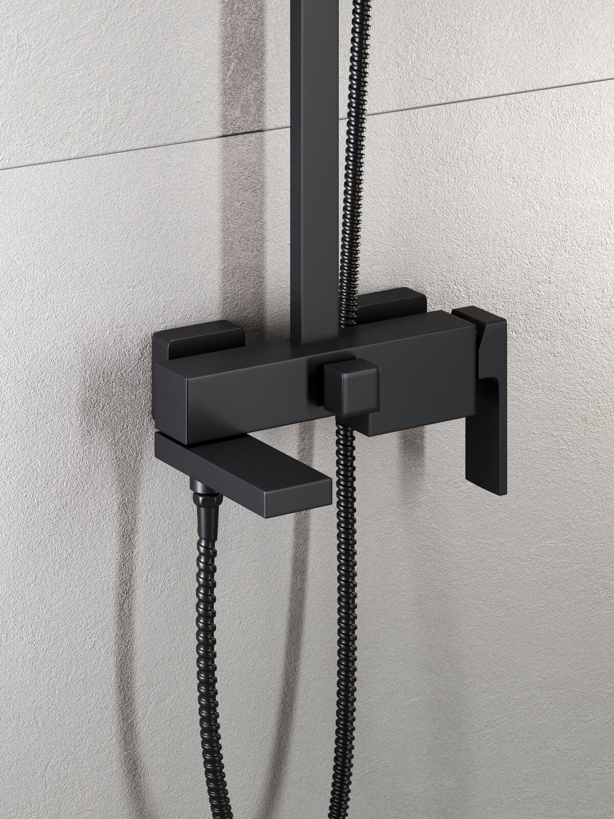 Душевая система Agger Great прекрасно дополнит интерьер ванной комнаты в современном стиле: поворотный излив (16,5 см), телескопическая штанга (751-1266 мм), квадратный верхний душ 250х250 мм с регулировкой угла наклона и силиконовыми наконечниками (с защитой от известкового налета), ручной душ (1 режим), регулируемый по высоте и наклону держатель ручного душа, шланг 150 см. с защитой от перекручивания (в металлической оплетке), смеситель с керамическим картриджем (переключение на душ - поворотом излива). Цвет матовый черный.