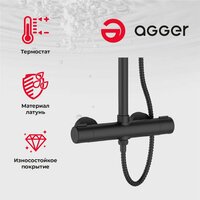 Купить Душевая стойка Agger Thermo A2451244 с тропическим душем, со смесителем, черный, латунная, без излива, с лейкой матовая с доставкой по всей России. Душевая стойка Agger Thermo A2451244 с тропическим душем, со смесителем, черный, латунная, без излива, с лейкой матовая: сравнение цен, характеристики, фото, актуальное наличие и цены.