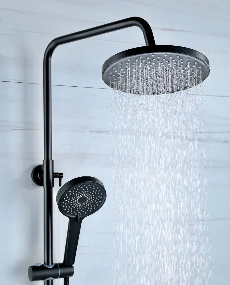 Купить Душевая стойка BOND Circle B01-8188 с тропическим душем, со смесителем, черный, латунная, без излива, рычаг сбоку с лейкой матовая с доставкой по всей России. Душевая стойка BOND Circle B01-8188 с тропическим душем, со смесителем, черный, латунная, без излива, рычаг сбоку с лейкой матовая: сравнение цен, характеристики, фото, актуальное наличие и цены.