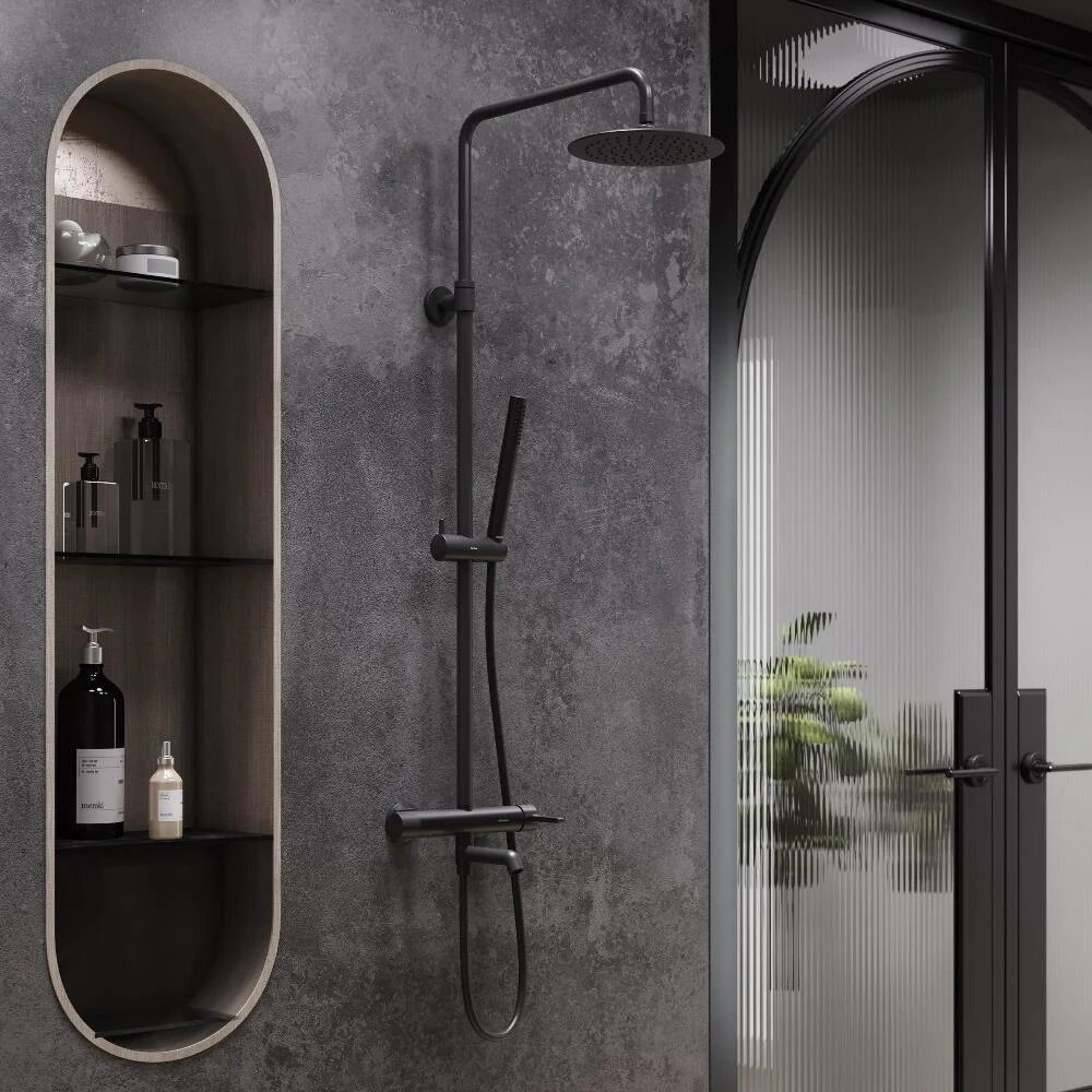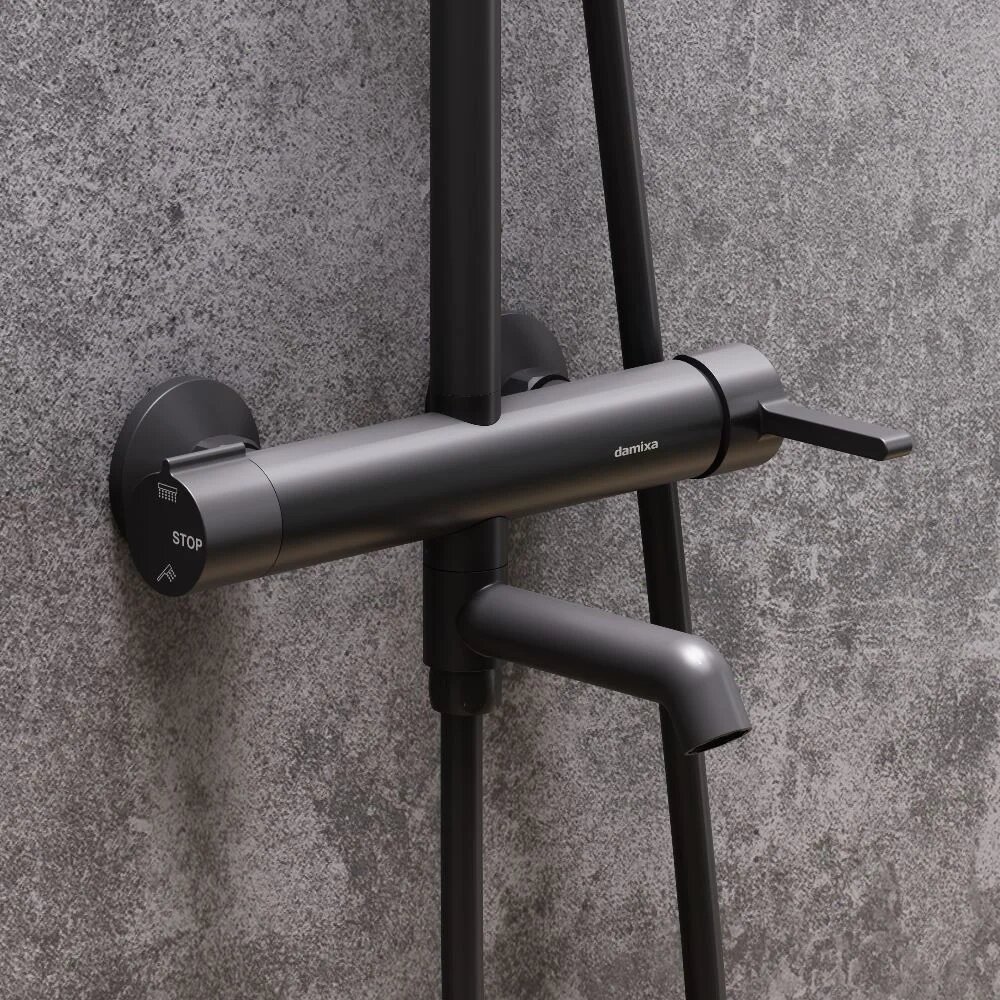 Купить Душевая стойка Damixa Scandinavian Pure 936740300 с тропическим душем, со смесителем, с изливом, черный, латунная, рычаг сбоку с лейкой матовая с доставкой по всей России. Душевая стойка Damixa Scandinavian Pure 936740300 с тропическим душем, со смесителем, с изливом, черный, латунная, рычаг сбоку с лейкой матовая: сравнение цен, характеристики, фото, актуальное наличие и цены.