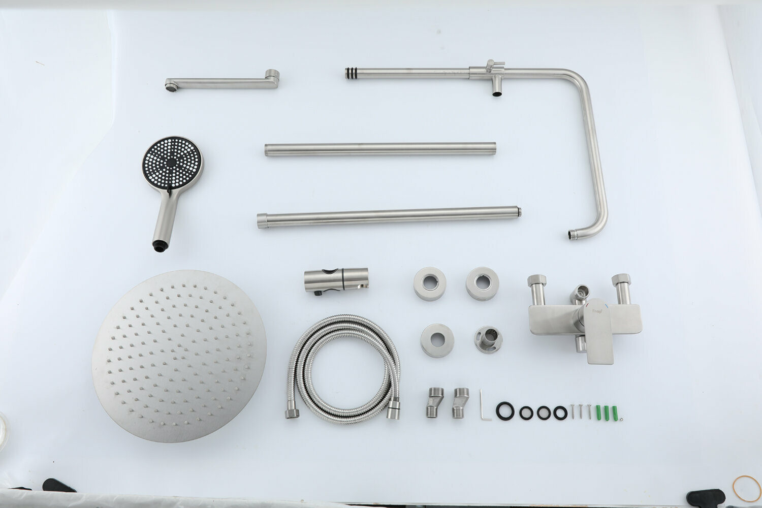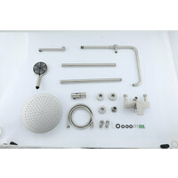 | Комплектация | верхний душ, держатель лейки, дивертор, душевая стойка, душевая штанга, излив для набора воды, кронштейн, кронштейн для верхнего душа, лейка, набор эксцентриков, настенный держатель, отражатель, ручной душ, смеситель, шланг |
