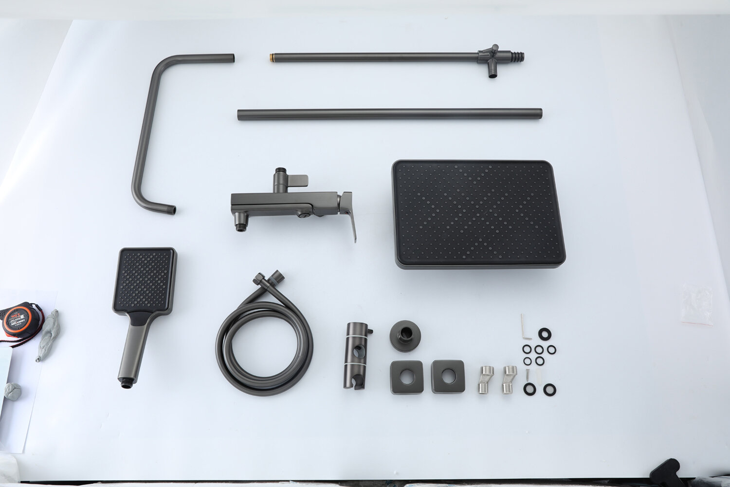 | Комплектация | вентиль, верхний душ, гусак, держатель лейки, дивертор, душевая стойка, душевая штанга, излив для набора воды, кронштейн, кронштейн для верхнего душа, лейка, набор эксцентриков, настенный держатель, отражатель, переключатель потоков, прокладки, ручной душ, смеситель, шланг, эксцентрик |