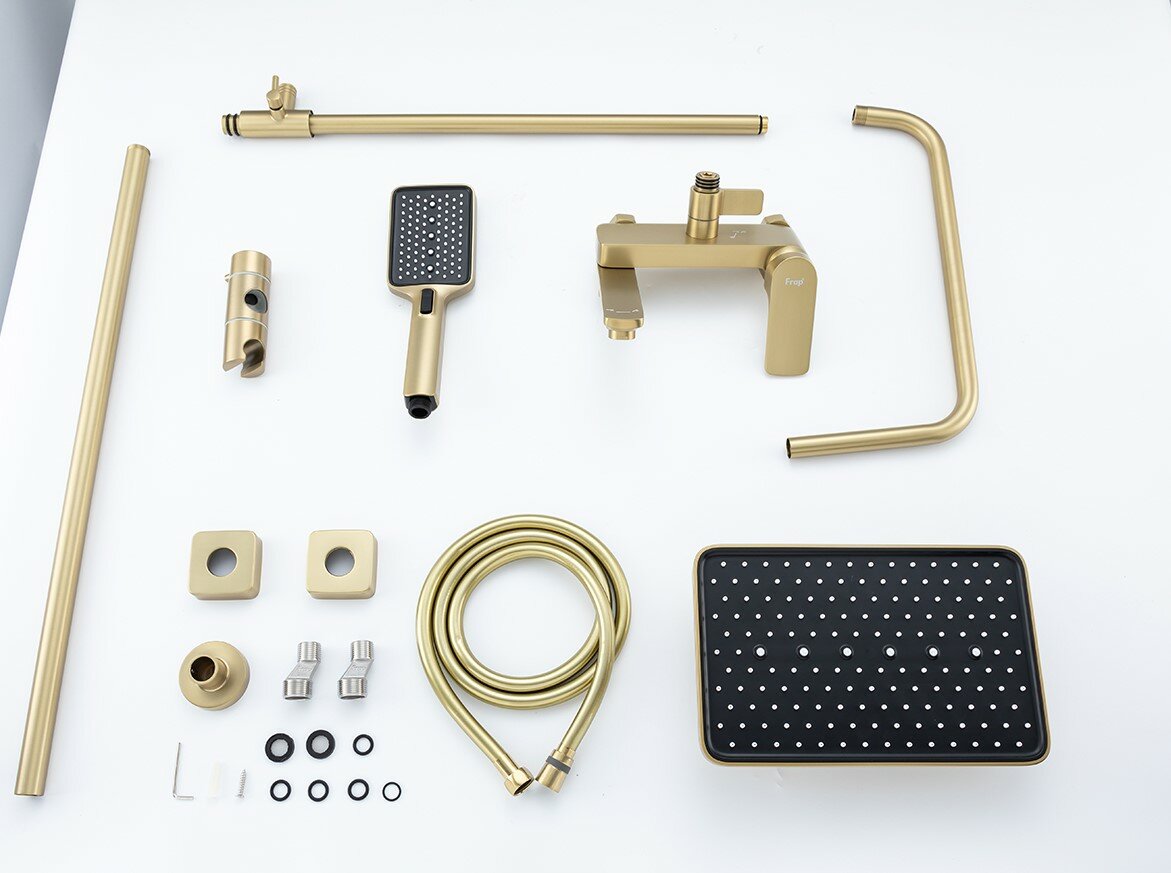 | Комплектация | верхний душ, гусак, держатель лейки, душевая стойка, душевая штанга, излив для набора воды, кронштейн для верхнего душа, лейка, набор эксцентриков, настенный держатель, отражатель, прокладки, ручной душ, смеситель, шланг, эксцентрик |