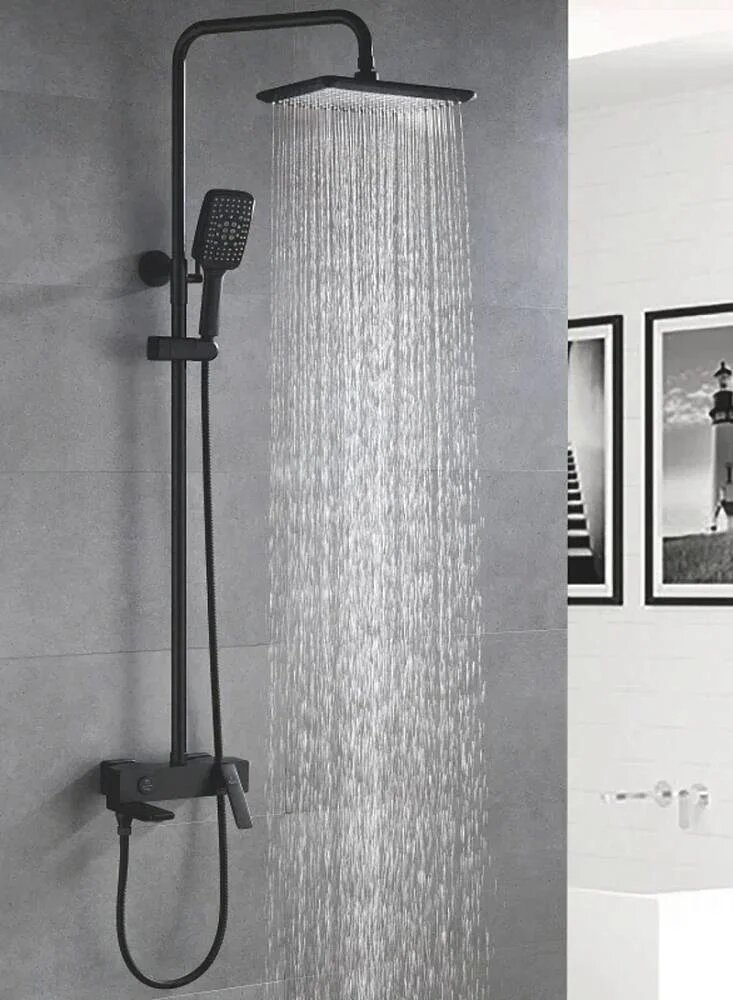 Купить Душевая стойка Rose R2736H с тропическим душем, со смесителем, с изливом, черный, латунная, рычаг сбоку с лейкой с девиатором матовая с доставкой по всей России. Душевая стойка Rose R2736H с тропическим душем, со смесителем, с изливом, черный, латунная, рычаг сбоку с лейкой с девиатором матовая: сравнение цен, характеристики, фото, актуальное наличие и цены.