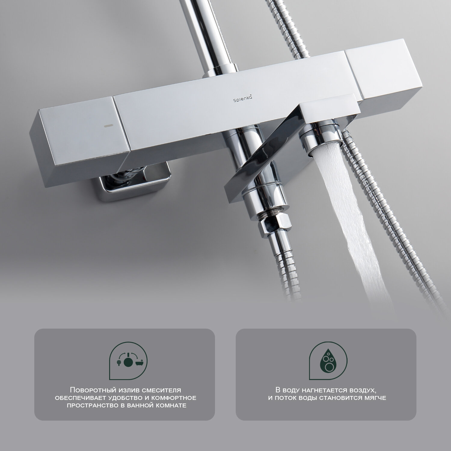 S-образные эксцентрики, аэратор, держатель душевой лейки, поворотный излив, регулируемый верхний душ