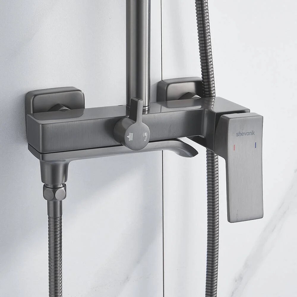 Душевая стойка Shevanik S4036T с тропическим душем, со смесителем, с изливом, латунная, рычаг сбоку, с лейкой, матовая: сравнение цен, характеристики, фото, актуальное наличие и цены.