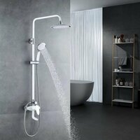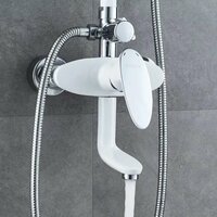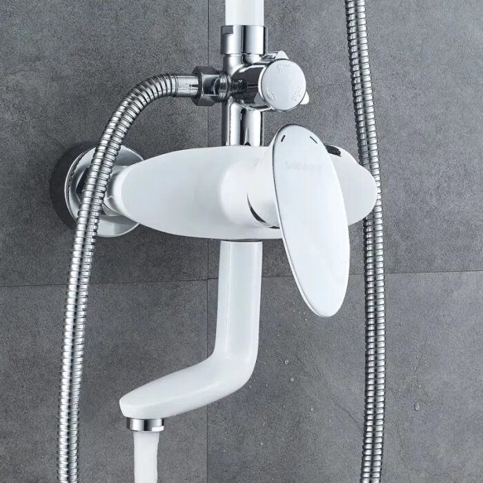 Душевая стойка Shevanik S9836F с тропическим душем, со смесителем, с изливом, латунная, белая, хром рычаг сбоку с лейкой: сравнение цен, характеристики, фото, актуальное наличие и цены.