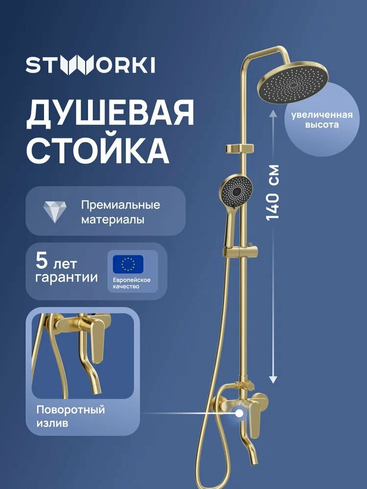 Купить Душевая стойка STWORKI Киркенес S45170GM с тропическим душем, со смесителем, с изливом, латунная, золотая, рычаг сбоку, с лейкой, матовая с доставкой по всей России. Душевая стойка STWORKI Киркенес S45170GM с тропическим душем, со смесителем, с изливом, латунная, золотая, рычаг сбоку, с лейкой, матовая: сравнение цен, характеристики, фото, актуальное наличие и цены.