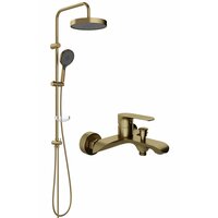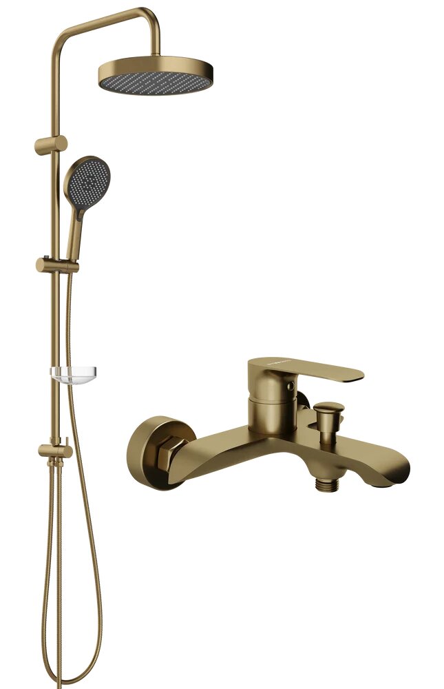 Купить Душевая стойка STWORKI Молде S23180GM с тропическим душем, со смесителем, с изливом, латунная, золотая, с лейкой, с девиатором, матовая с доставкой по всей России. Душевая стойка STWORKI Молде S23180GM с тропическим душем, со смесителем, с изливом, латунная, золотая, с лейкой, с девиатором, матовая: сравнение цен, характеристики, фото, актуальное наличие и цены.