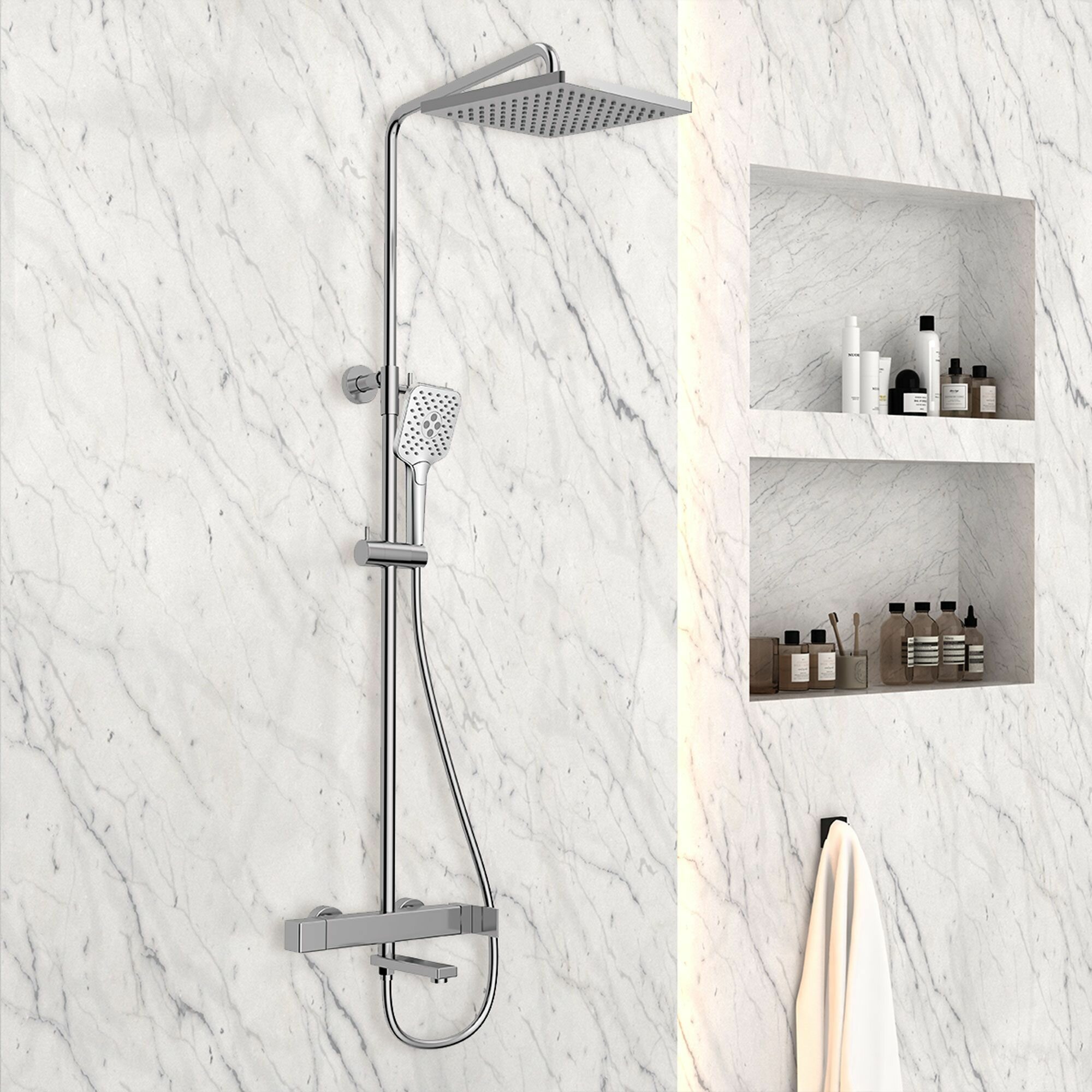 | Особенности | аэратор, держатель душевой лейки, защита от скручивания, поворотный излив, регулируемый верхний душ |