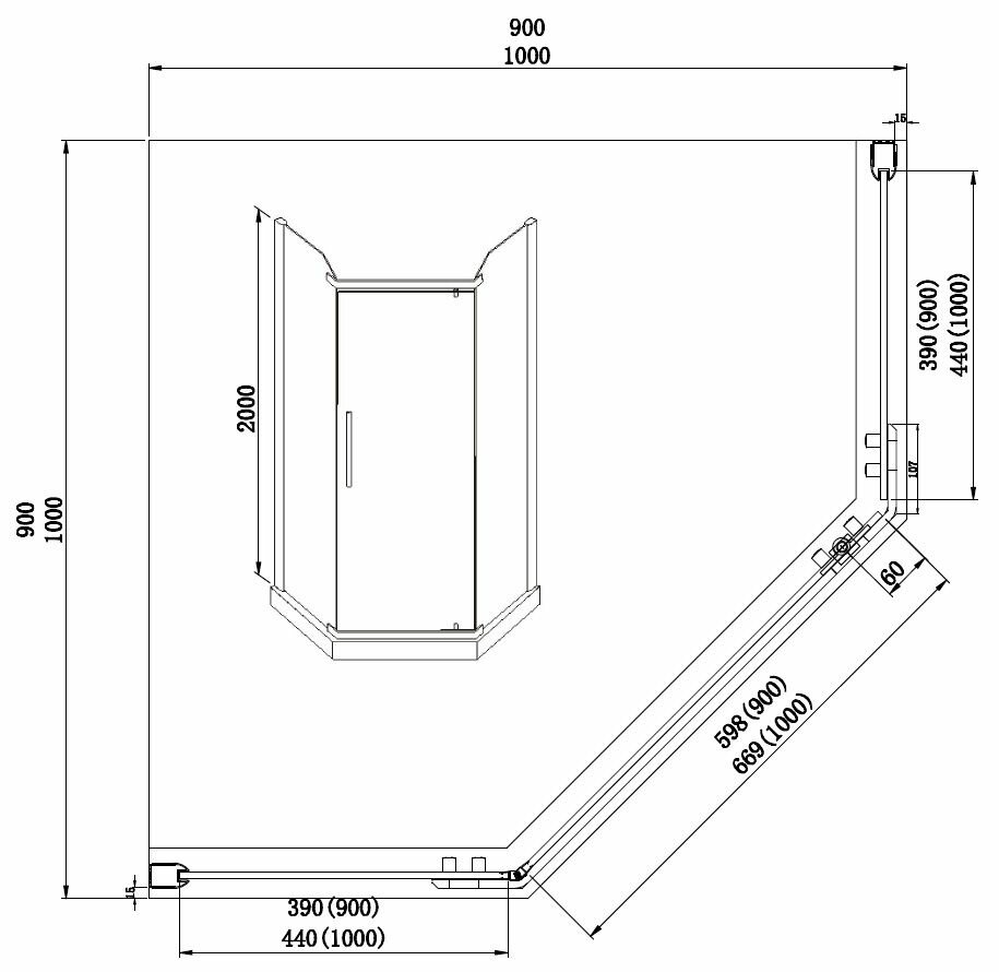 Душевое ограждение AZARIO EDMONTON 90х90х200 стекло прозрачное 8 мм. профиль черный (AZ-NNC3231-1 900 BLACK)