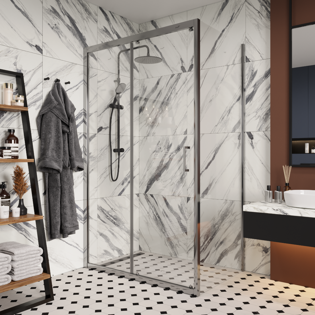 Душевая перегородка со штангой Veconi KR-81 110 см. профиль хром, прозрачное стекло 8 мм