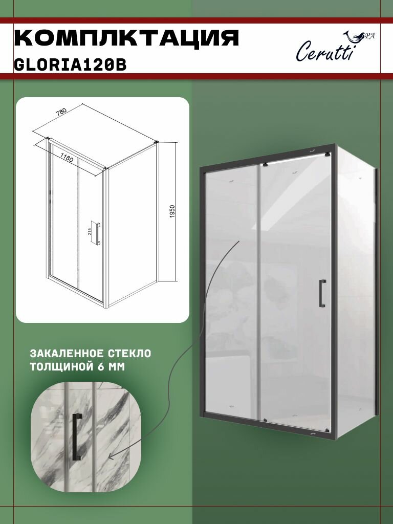 Душевое ограждение Ceruttispa GLORIA120B (80x120x195) прямоугольник, стекло прозрачное: сравнение цен, характеристики, фото, актуальное наличие и цены.