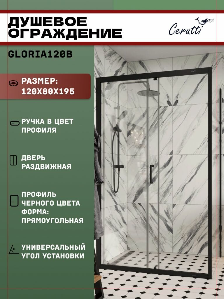 Купить Душевое ограждение Ceruttispa GLORIA120B (80x120x195) прямоугольник, стекло прозрачное с доставкой по всей России.