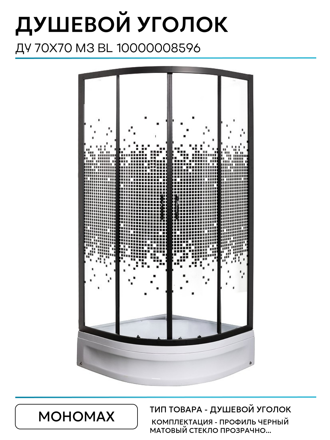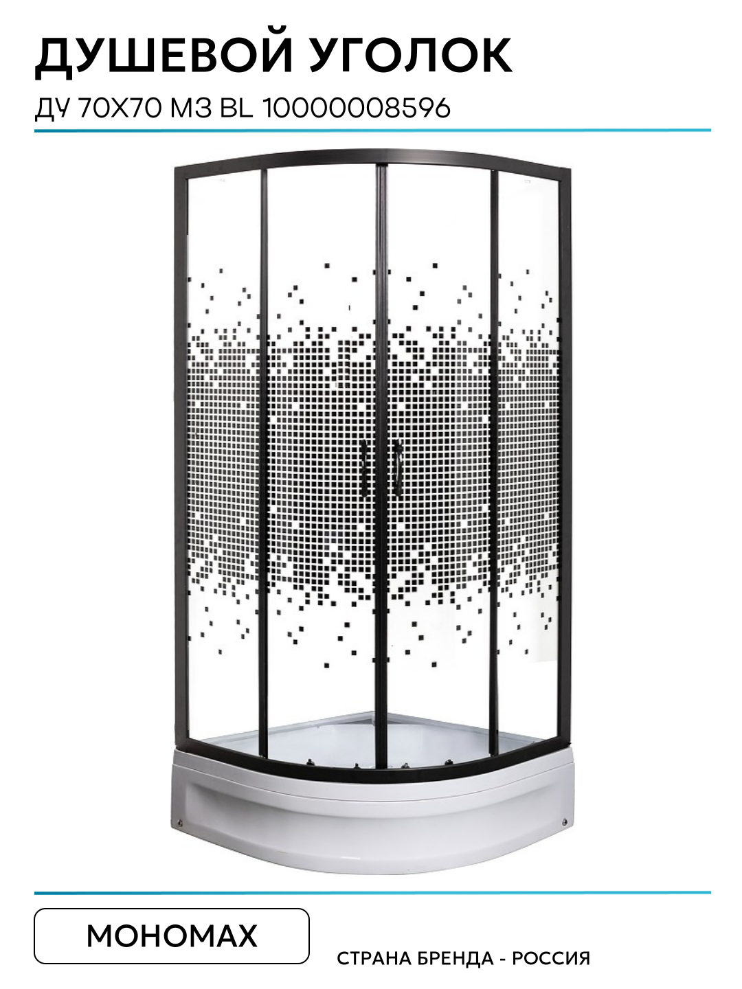 Купить Душевой уголок Мономах 70/180 МЗ BL 10000008596 70×70 см, профиль черный матовый, стекло интимато с доставкой по всей России.