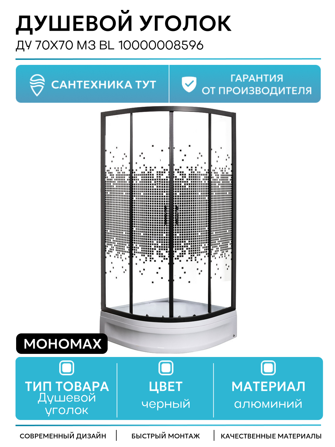 Душевой уголок Мономах 70/180 МЗ BL 10000008596 70×70 см, профиль черный матовый, стекло интимато: сравнение цен, характеристики, фото, актуальное наличие и цены.