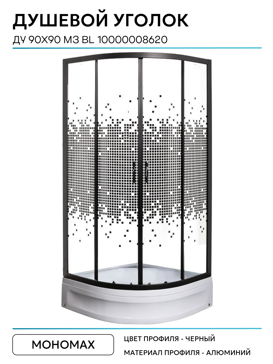 Душевой уголок Мономах ДУ 90×90 МЗ BL 10000008620 профиль Черный матовый стекло прозрачное с рисунком алюминий черный: сравнение цен, характеристики, фото, актуальное наличие и цены.