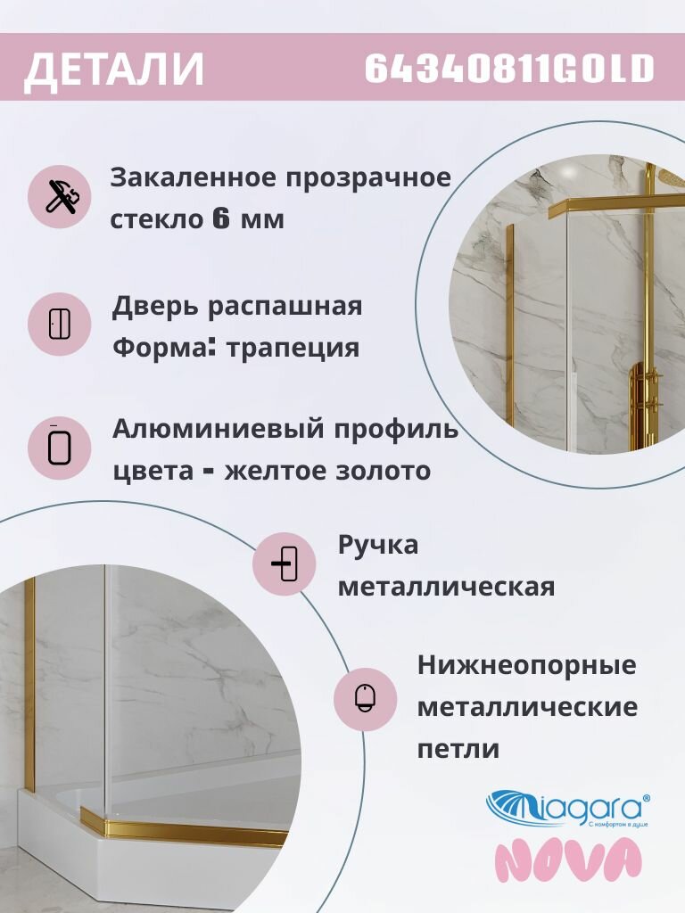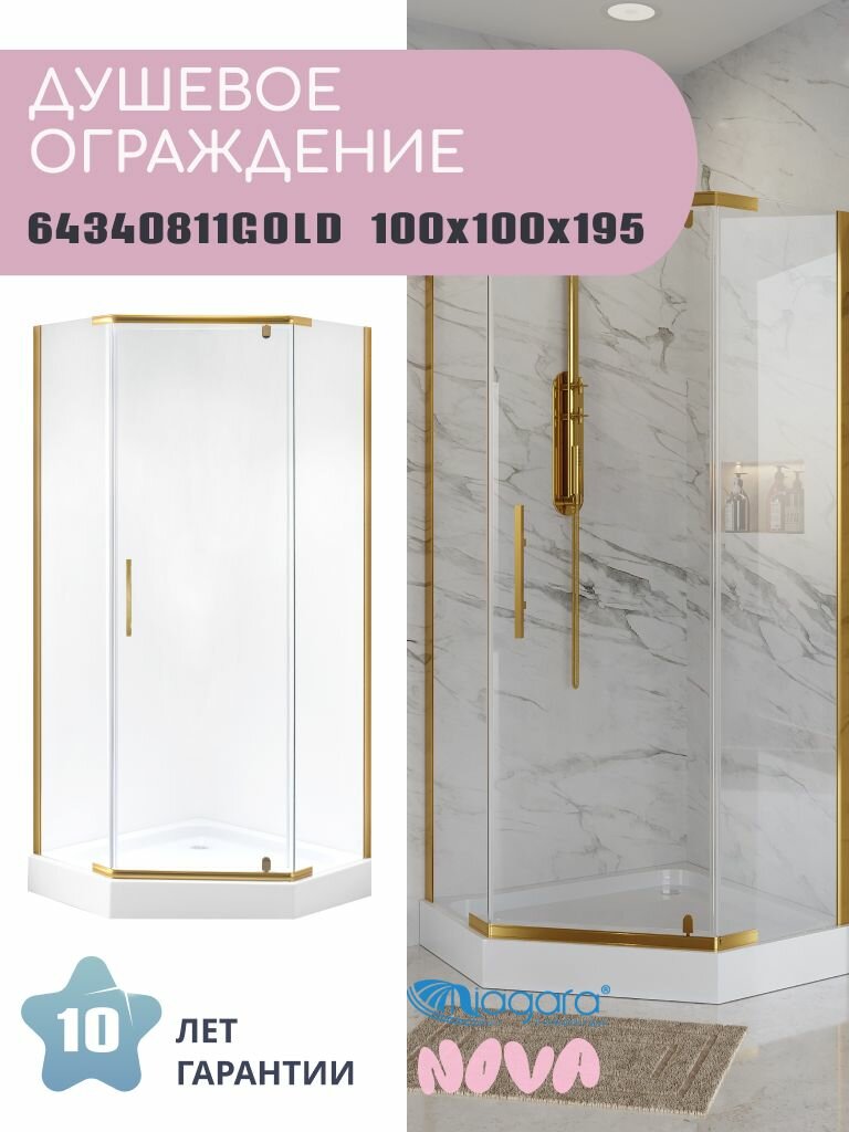 Душевое ограждение Niagara Nova NG-6434-08GOLD (100х100х195) трапеция, золото, двери распашные, стекло прозрачное,1 место: сравнение цен, характеристики, фото, актуальное наличие и цены.