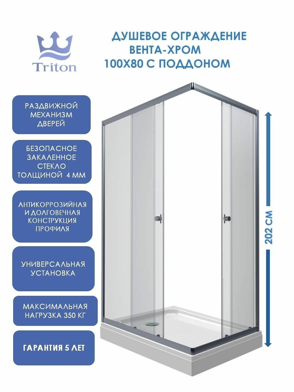 Душевое ограждение Triton Вента-Хром 100х80 с поддоном: сравнение цен, характеристики, фото, актуальное наличие и цены.
