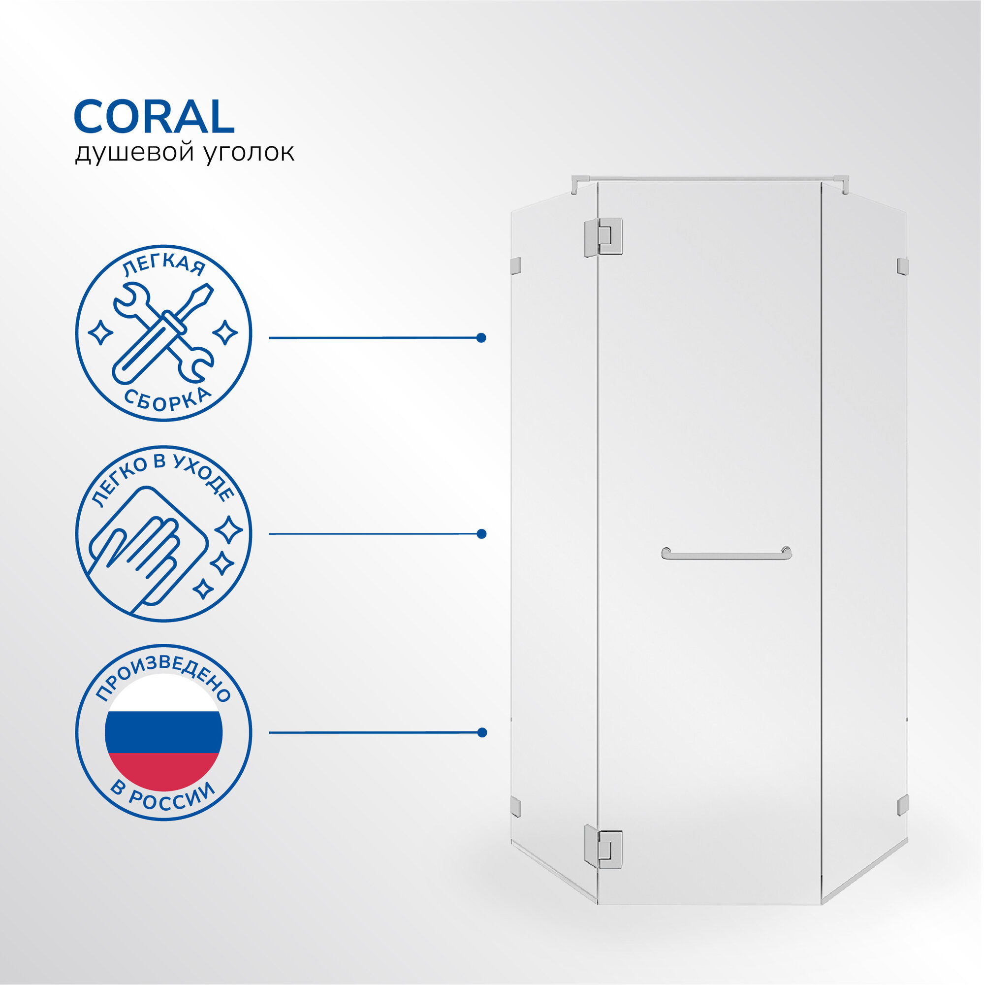 Душевой уголок Coral — это идеальное решение для Вашей ванной комнаты, сочетающее в себе стиль и функциональность. Изготовленный с использованием профиля из анодированного алюминия в элегантном хромированном цвете, он придаст Вашему интерьеру современный вид. Прозрачное закаленное стекло толщиной 8 мм обеспечивает не только безопасность, но и легкость в уходе.