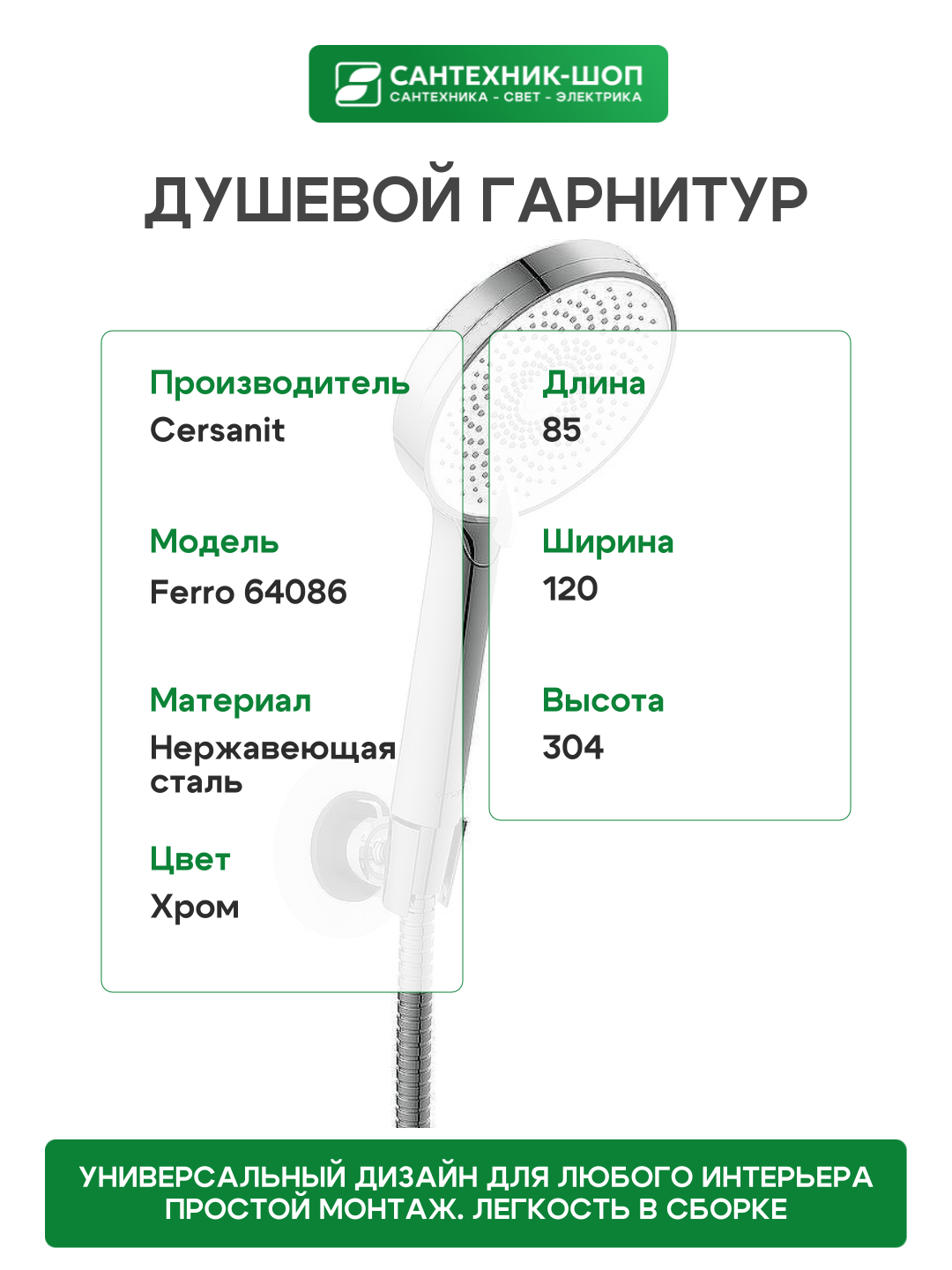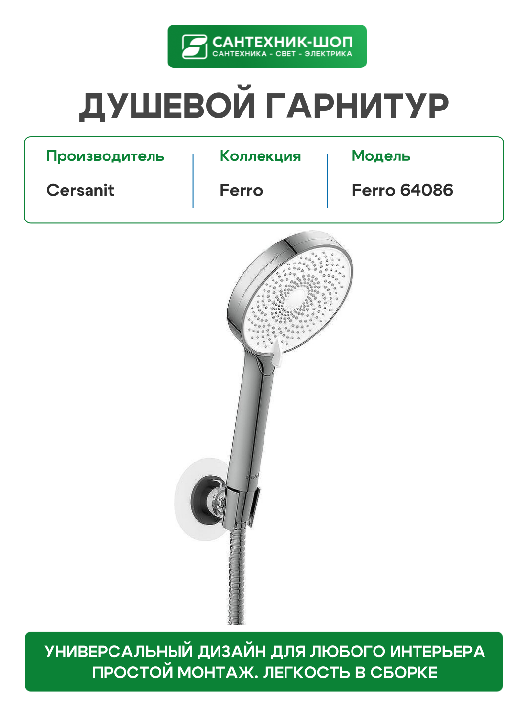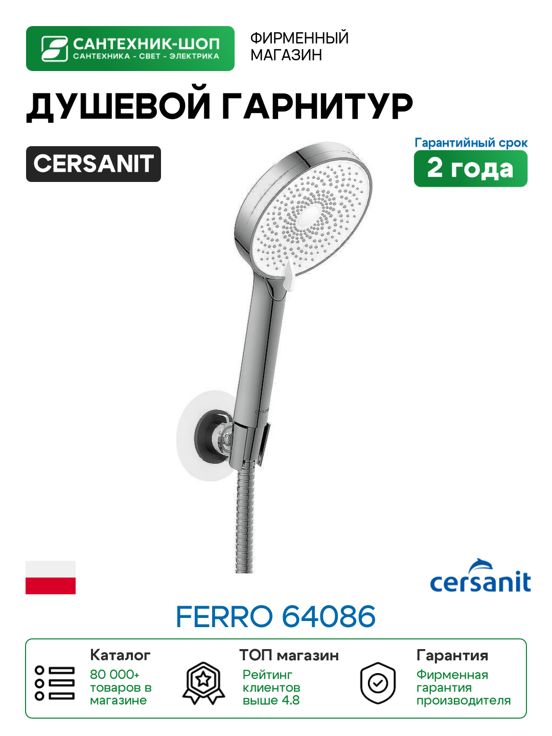 Купить Душевой гарнитур Cersanit Ferro 64086 Хром с доставкой по всей России. Душевой гарнитур Cersanit Ferro 64086 Хром: сравнение цен, характеристики, фото, актуальное наличие и цены.