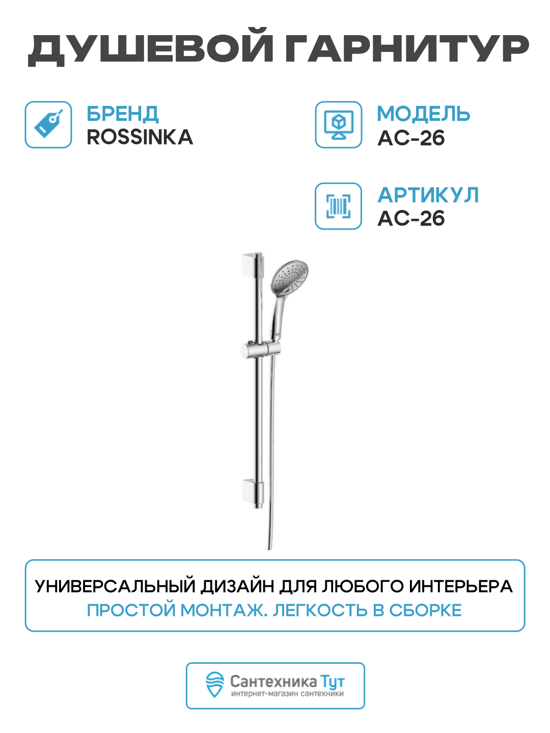 Душевой гарнитур для ванной комнаты Rossinka Rossinka AC-26 Хром: сравнение цен, характеристики, фото, актуальное наличие и цены.