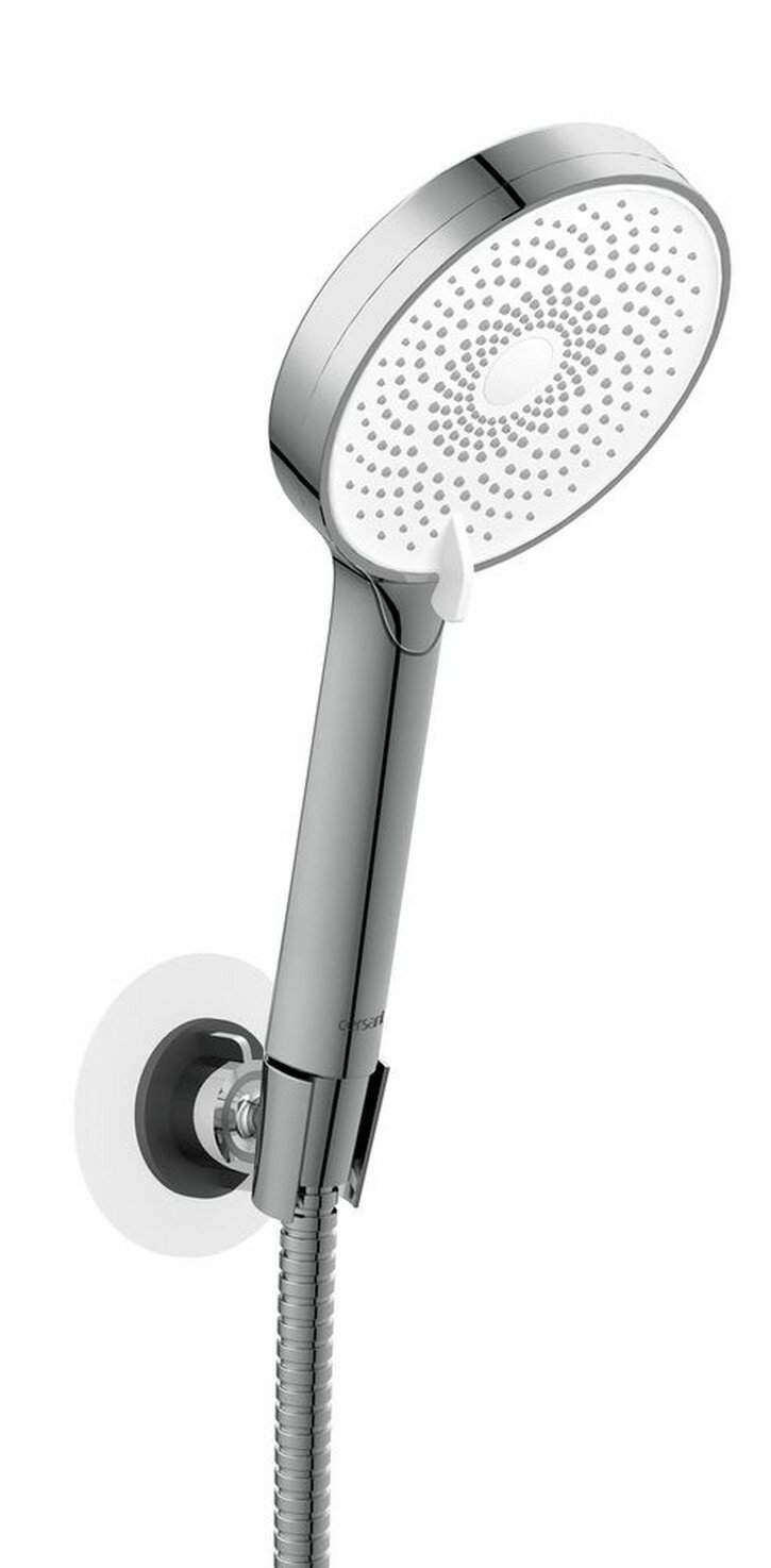 Душевой гарнитур оснащен 12-сантиметровой круглой лейкой с тремя режимами подачи воды. Режимы переключаются простым нажатием на кнопку, что делает использование душа максимально удобным и комфортным.