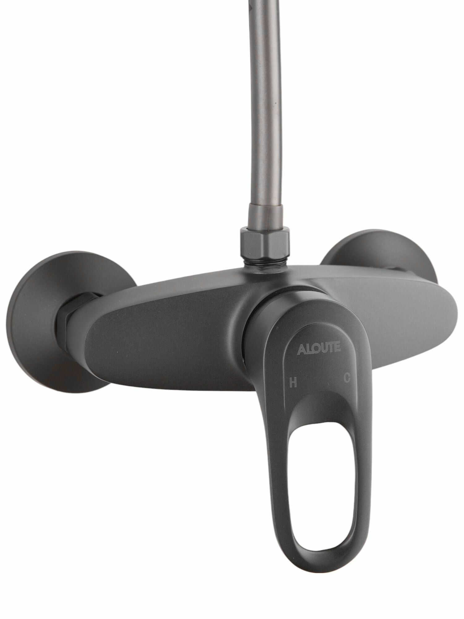 Купить Душевой гарнитур с тропическим душем диаметром 22 см и однорычажным смесителем, цвет графит с доставкой по всей России.