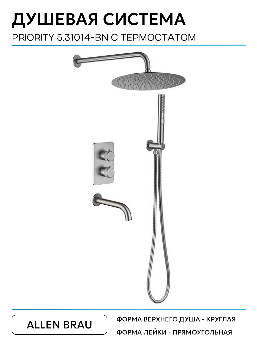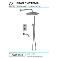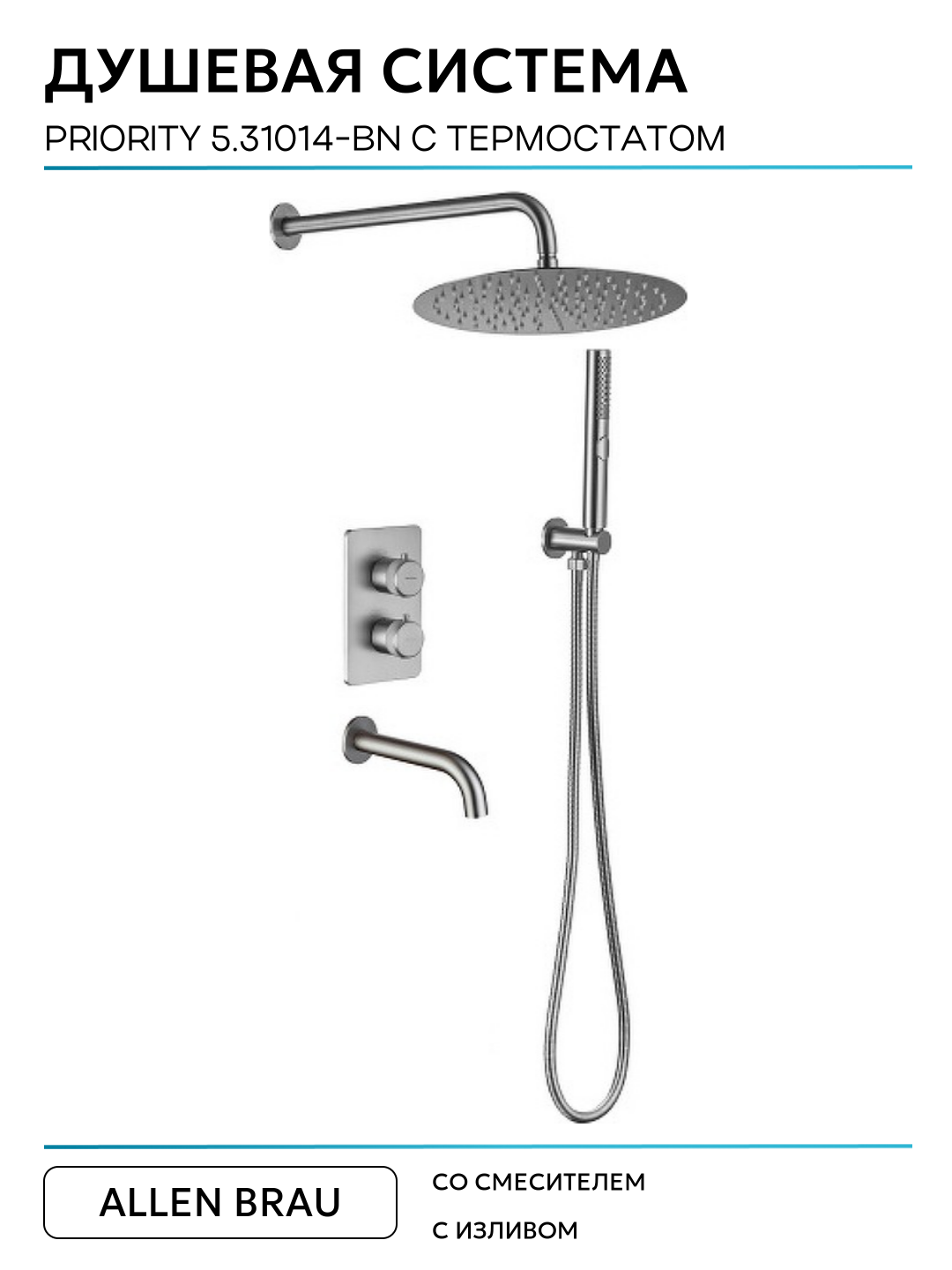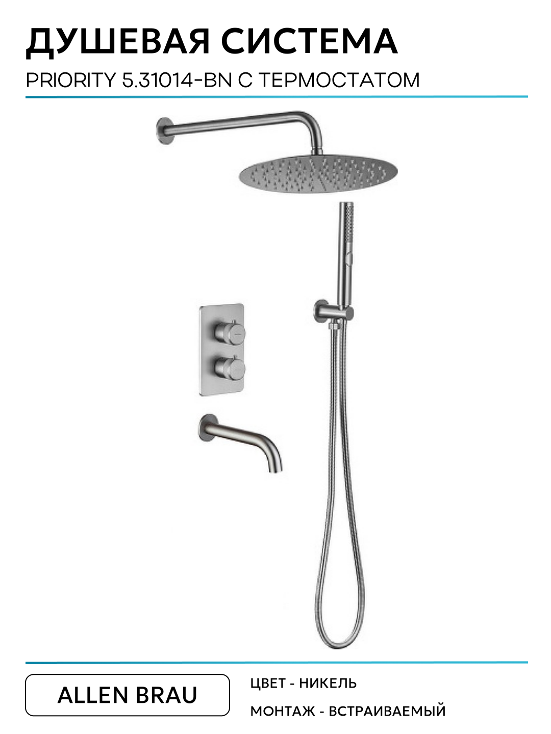 Душевая система Allen Brau Priority 5.31014-BN с термостатом Никель брашированный латунь встраиваемый с изливом: сравнение цен, характеристики, фото, актуальное наличие и цены.
