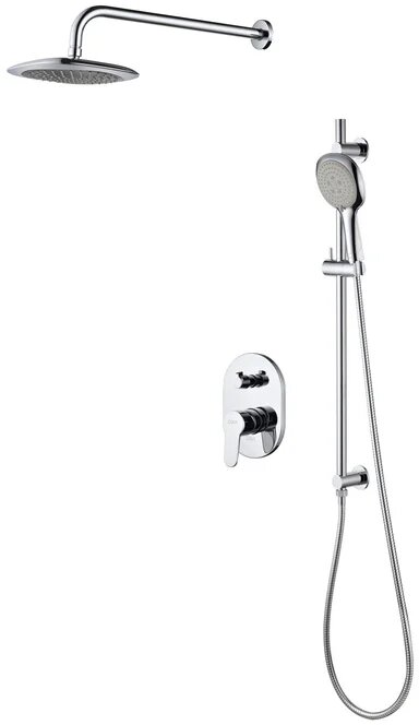 Душевой комплект D&K Rhein Marx DA1395701 4 в 1, встраиваемый, с внутренней частью в комплекте, со смесителем, с верхним душем, латунный, хром, глянцевый