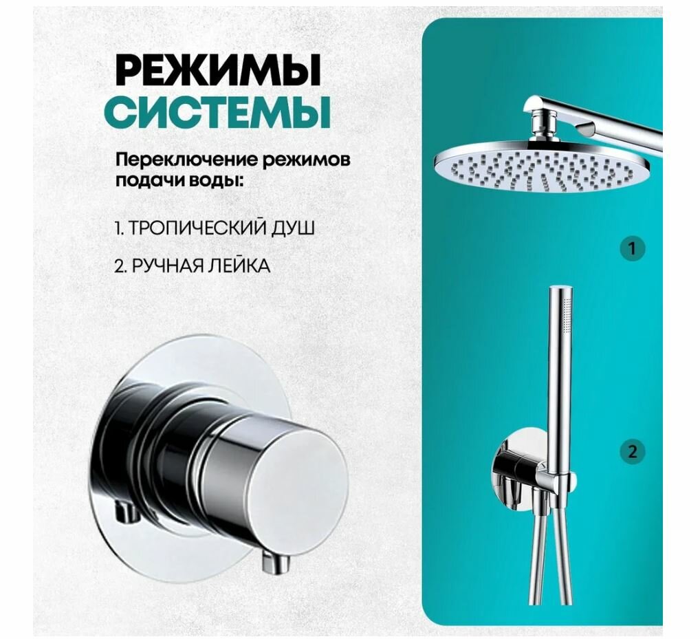 | Режимы | массажная струя, мягкая струя, смешанная струя, тропический дождь |