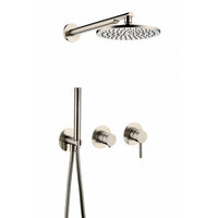 В комплекте с душевым набором идут смеситель и шланг для душа. Форма верхнего и бокового душа круглая, что обеспечивает равномерное распределение воды и удобство использования.