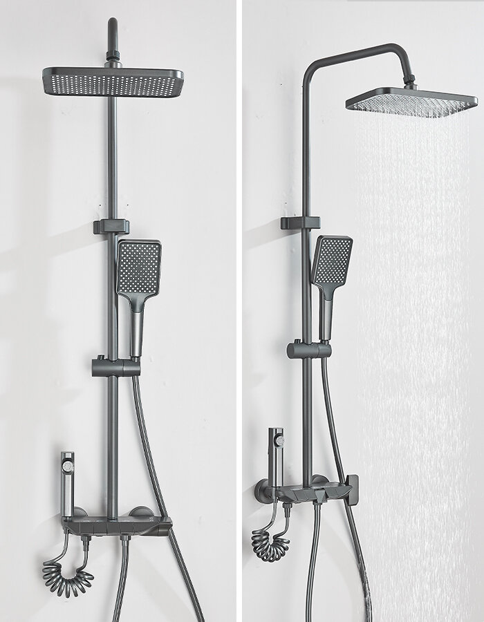 Душевая система имеет компоновку "4 в 1", которая является многофункциональной и простой в использовании. Встроенный гигиенический душ Благодаря высокому давлению воды очень удобно пользоваться и ополаскивать душ, ванну и предметы в ванной комнате.