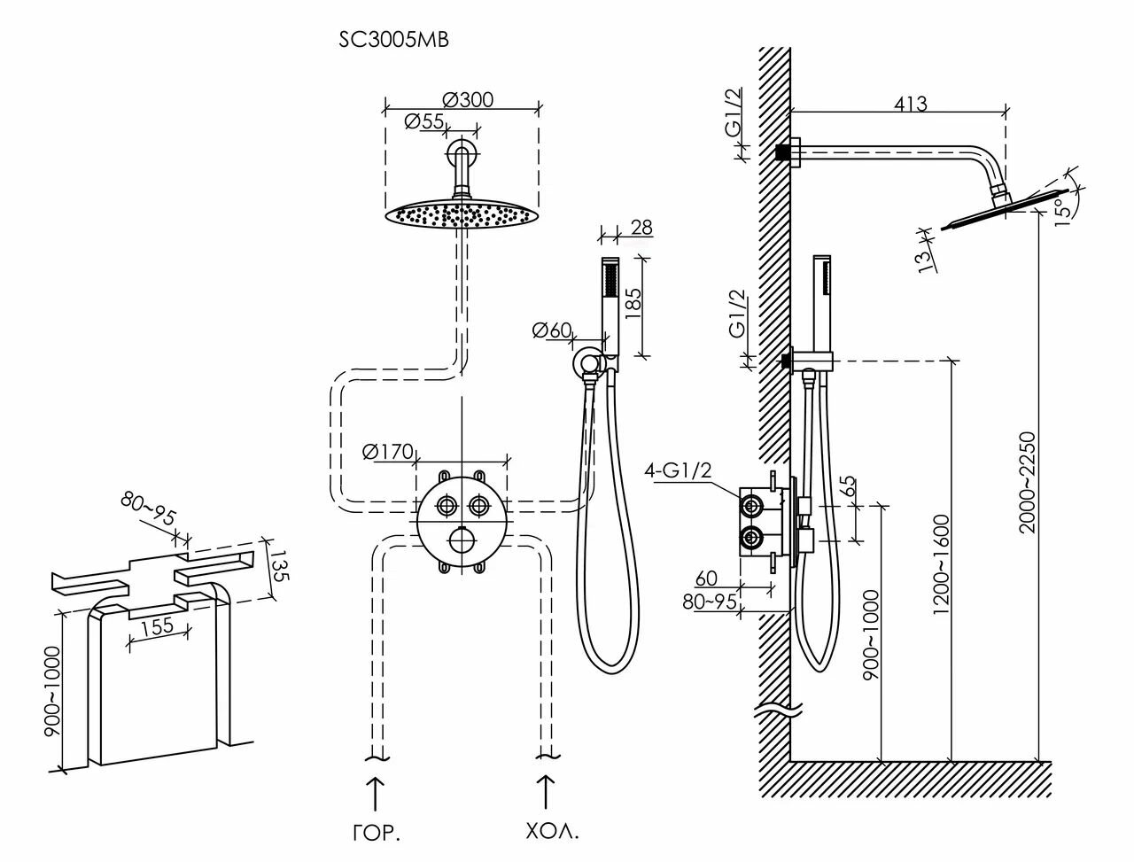2. Встроенный монтаж: благодаря своей конструкции данный комплект легко устанавливается непосредственно в стену, что позволяет сохранить чистоту и минимализм ванной комнаты.