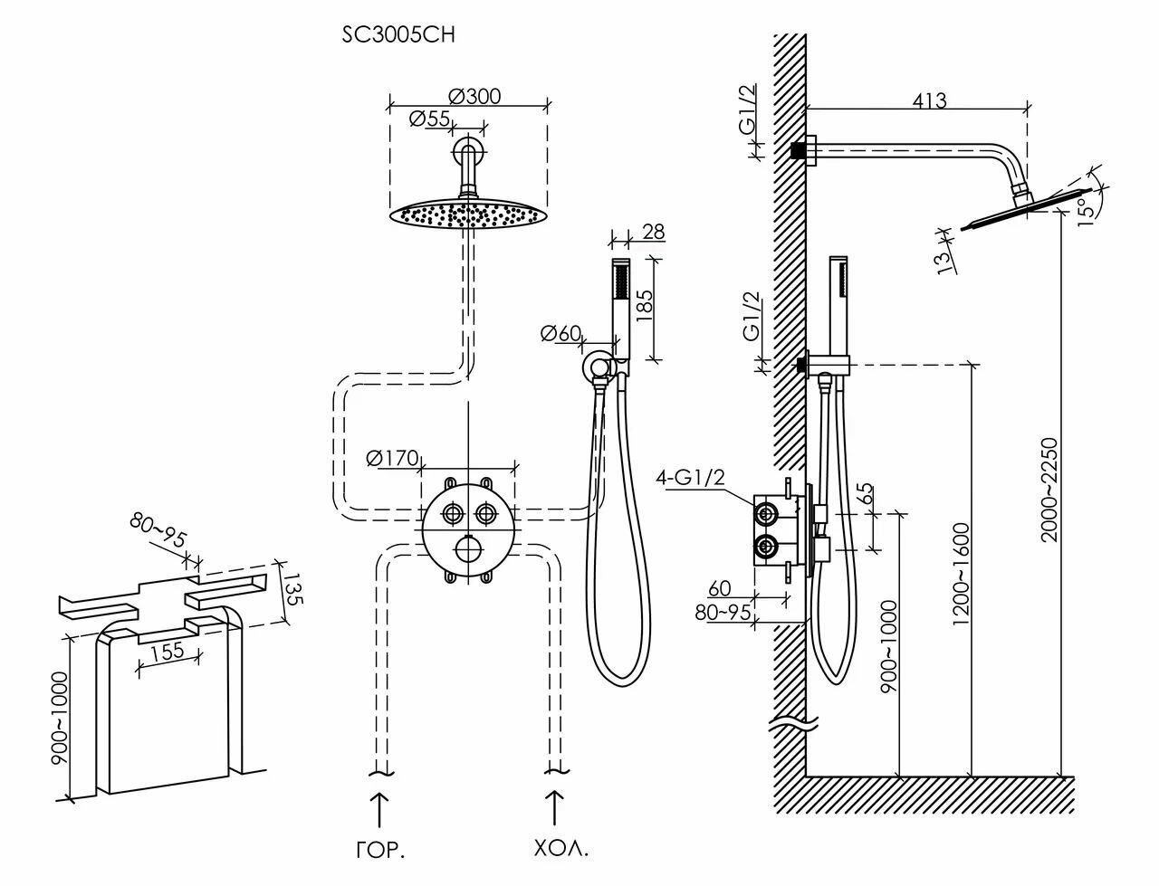 Душевой комплект SANCOS Link встраиваемый с термостатическим смесителем, цвет хром, арт. SC3005CH