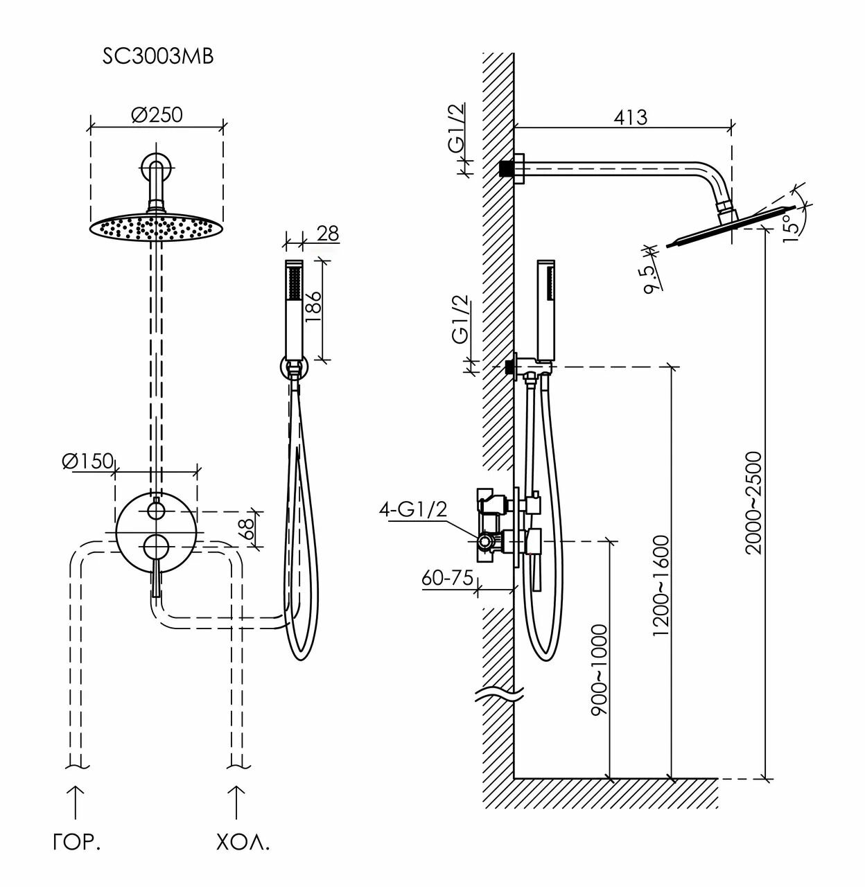 Душевая система Sancos Select SC3003MB Черная матовая латунь встраиваемый без излива со смесителем