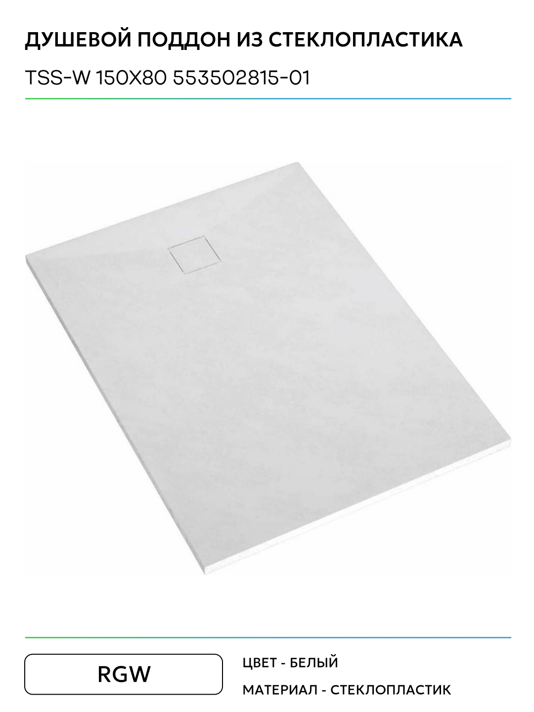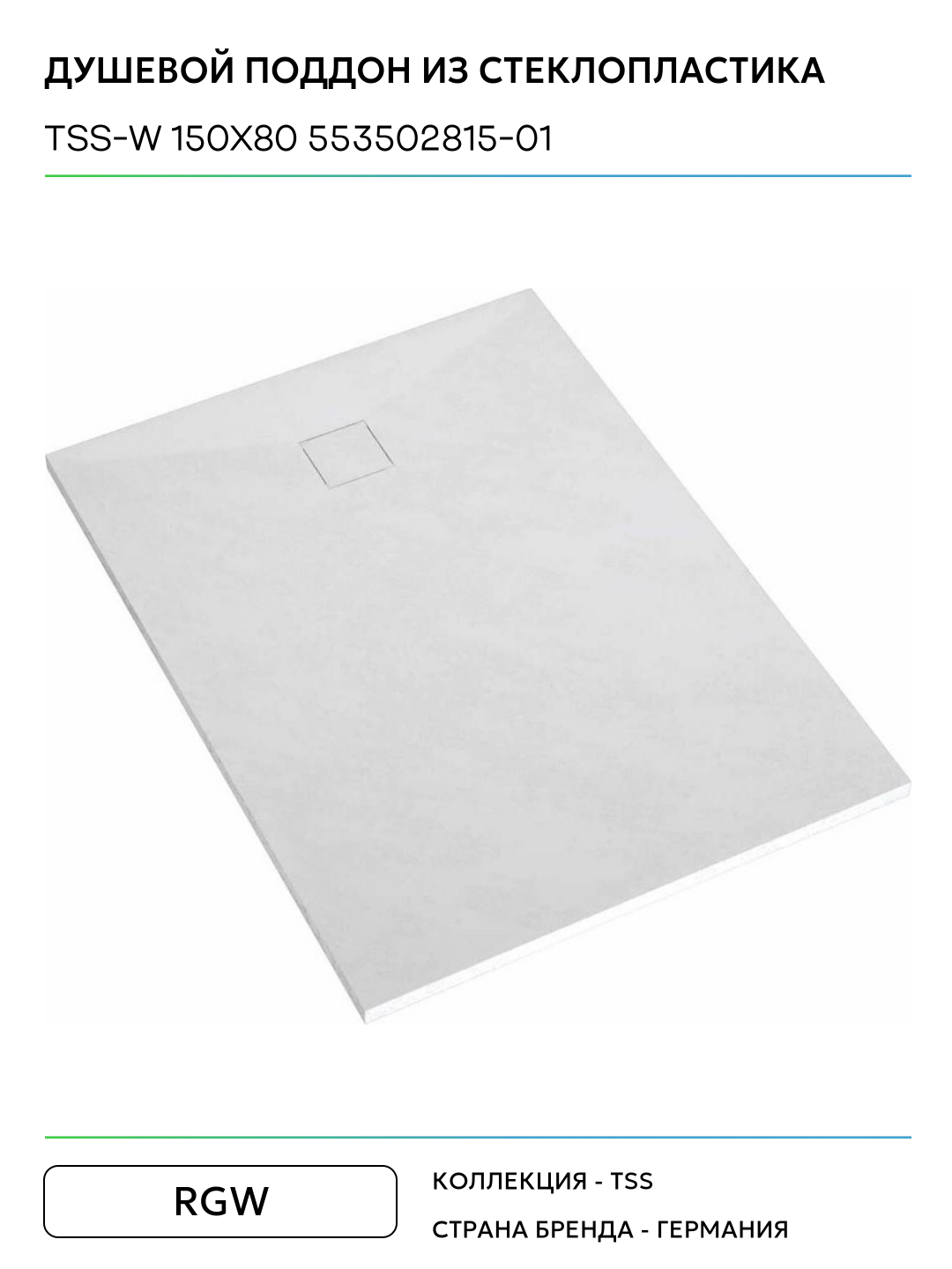 Душевой поддон из стеклопластика RGW TSS-W 150×80 553502815-01 Белый стеклопластик 150х80 Германия: сравнение цен, характеристики, фото, актуальное наличие и цены.