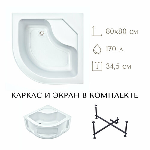 В комплект поставки входит: поддон, рама каркаса, лицевая панель (экран), комплектующие для установки (ножки, шпильки, опоры, крепеж), руководство по монтажу и эксплуатации.